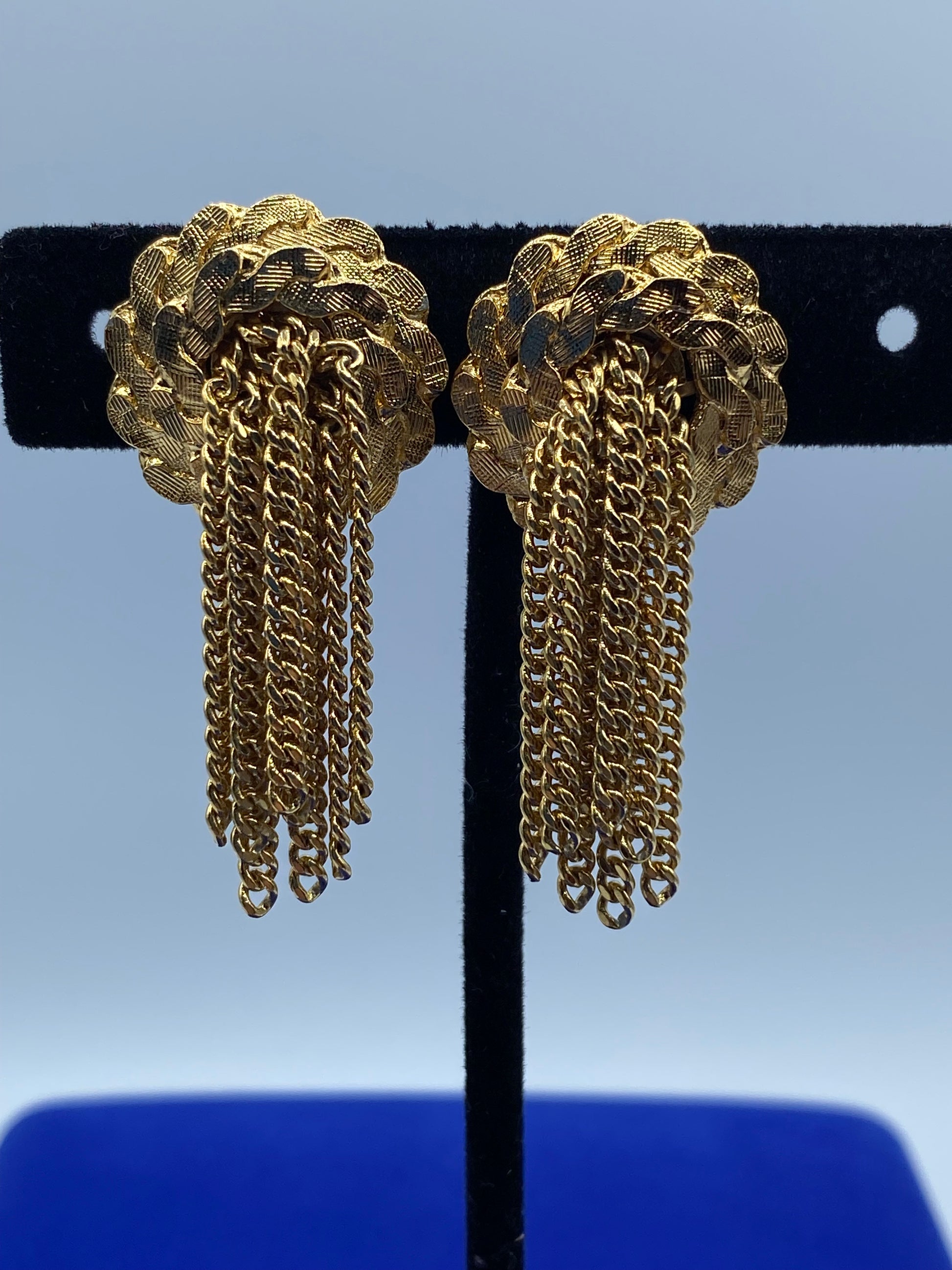 Add a touch of elegance and style to any outfit with our Monet Tassel Gold Tone Clip Ons. These clip ons are expertly crafted with a 1.75 inch length, ensuring a comfortable fit. Elevate your look with these versatile and timeless accessories.