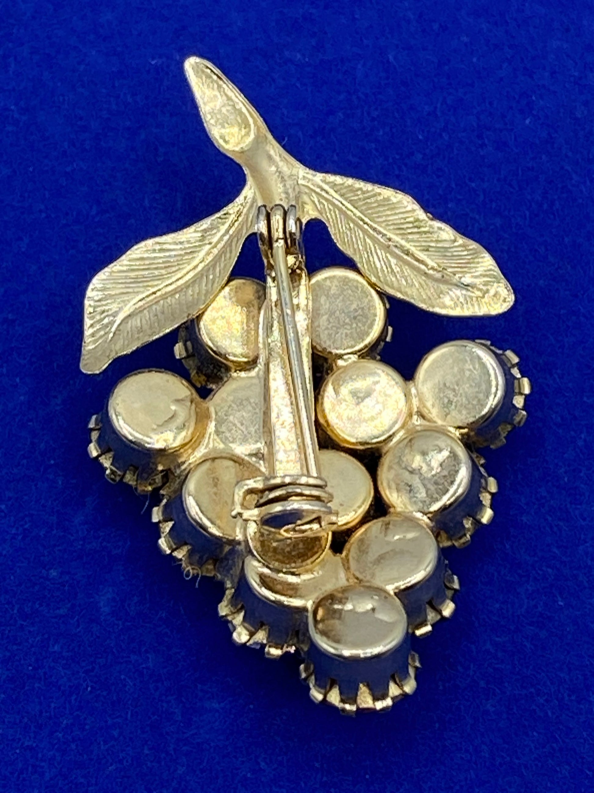 Add a touch of elegance to any outfit with our Rhinestone Grape Brooch. Measuring 1.75 inches long, this brooch features a beautiful design and is embellished with a stunning uranium rhinestone. Perfect for special occasions or everyday wear.