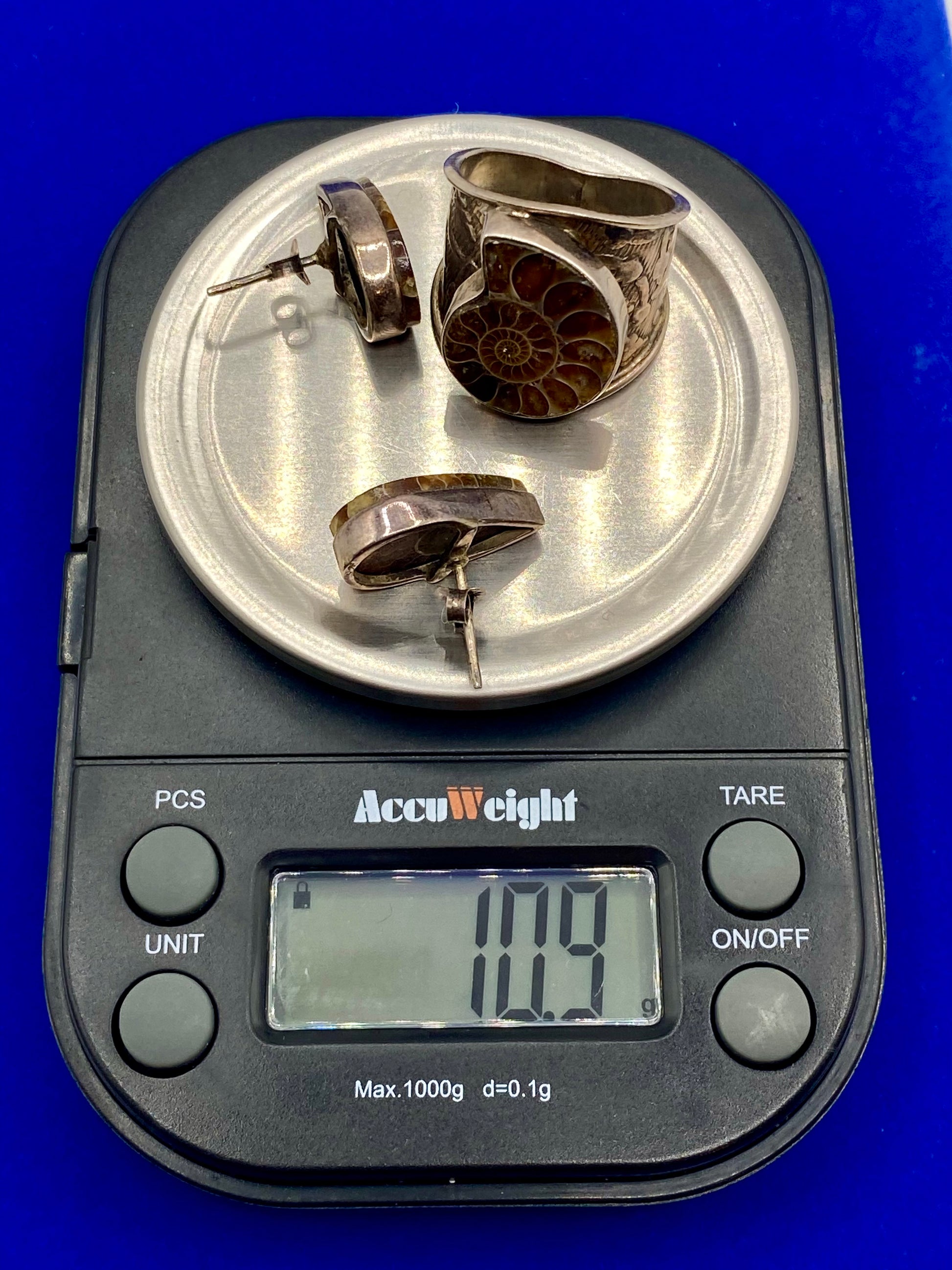 Sterling Silver Ammonite Ring & Earring Set