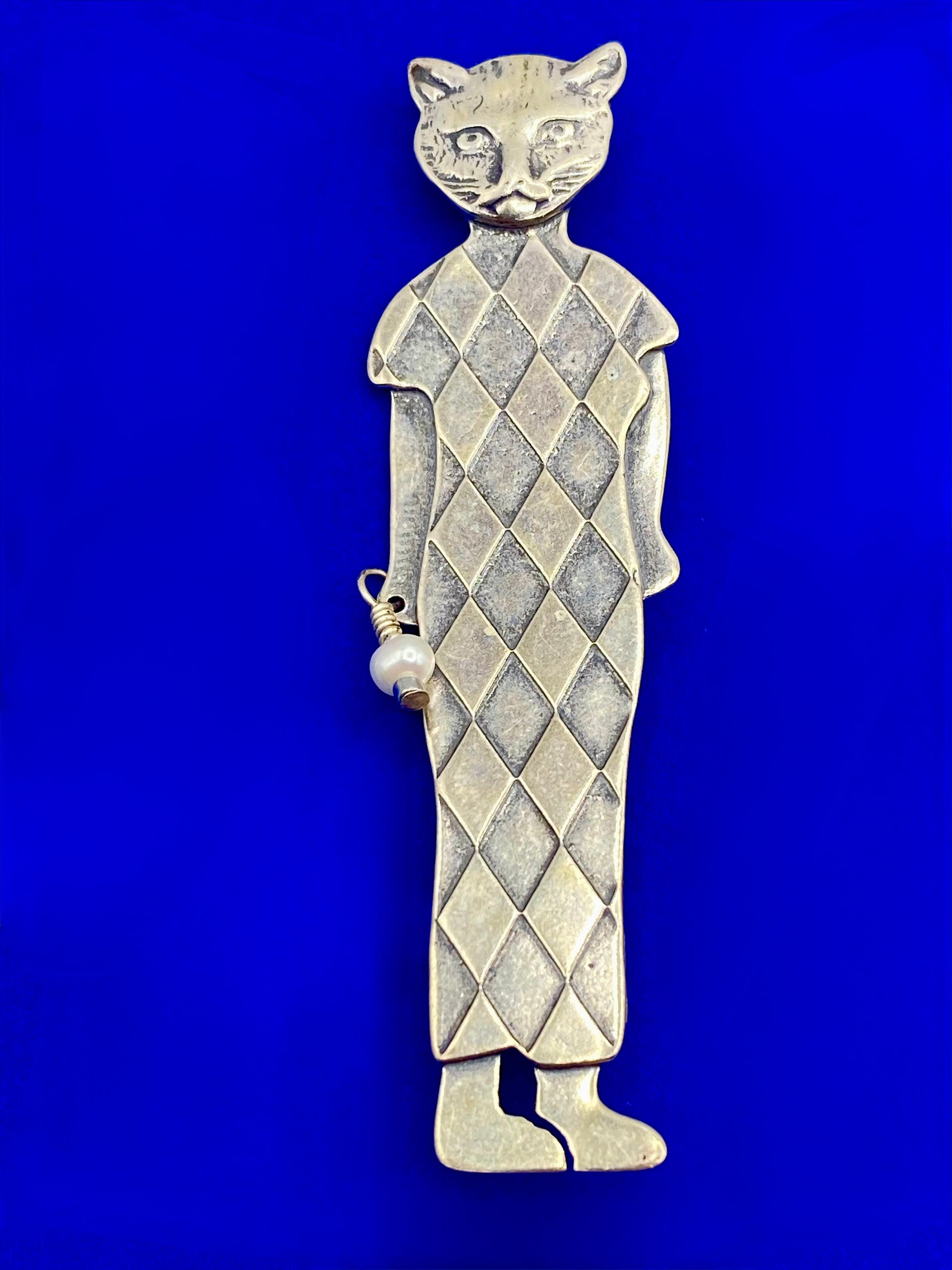 Sterling Silver Artisan Cat Person Brooch