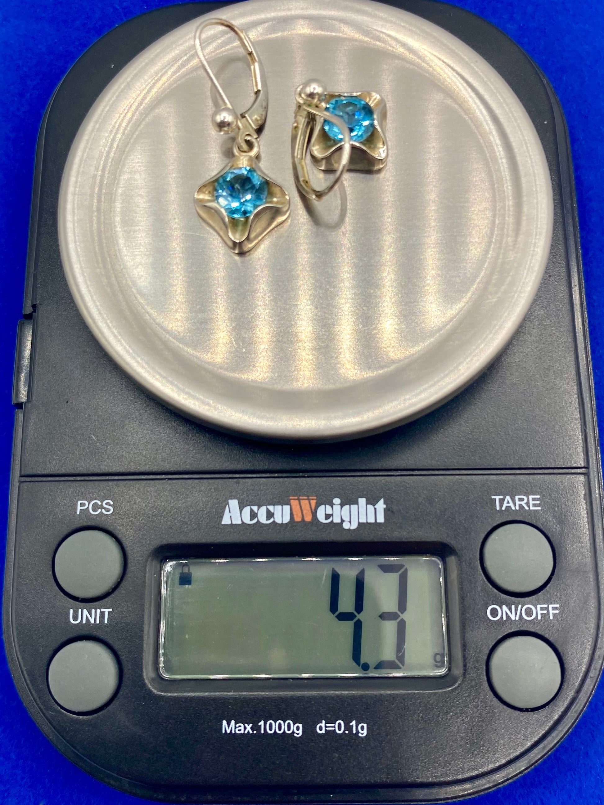 Expertly crafted from high-quality sterling silver, these Blue Topaz Dangle Earrings are a stunning addition to any jewelry collection. With a weight of 4.3 grams and a length of an inch, they offer the perfect balance of elegance and versatility. Perfect for any occasion, these earrings will add a touch of sophistication to any outfit.