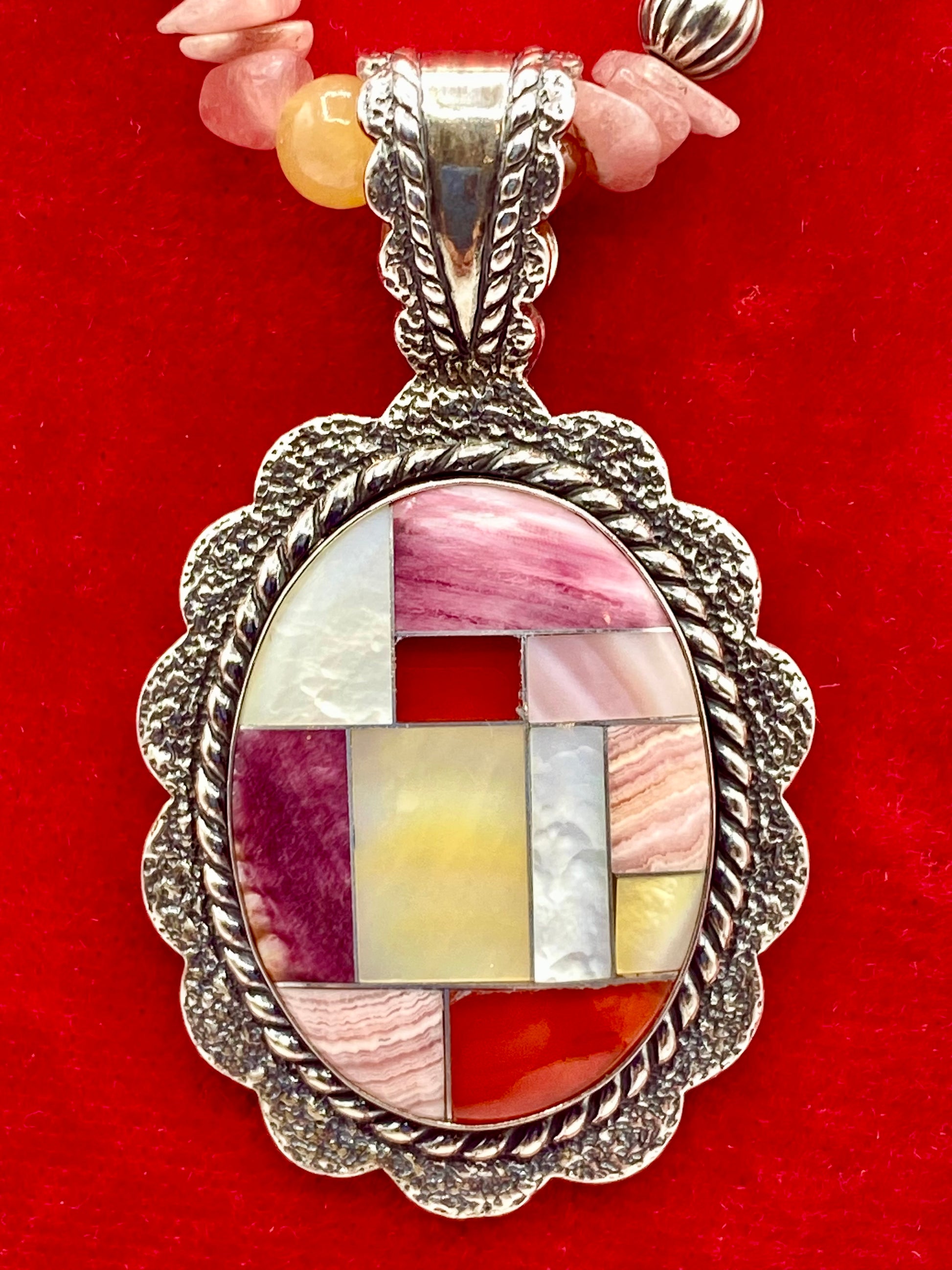 Sterling Silver Carolyn Pollack Relios Pink Rhodochrosite Chip & Inlay Stone Necklace