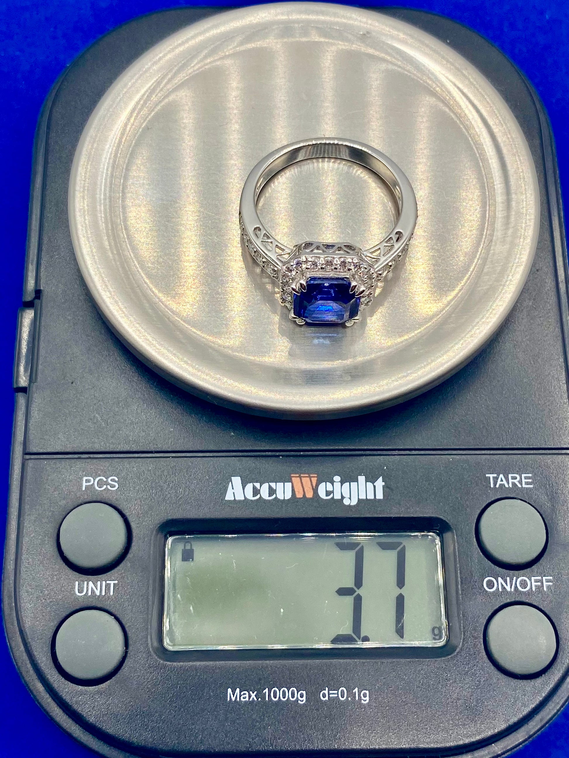 This Sterling Silver Dark Blue Square Sapphire & CZ Ring is a stunning addition to any jewelry collection. Crafted with high-quality materials, this ring features a deep blue square sapphire and sparkling cubic zirconia stones. With a weight of 3.7 grams and a size 7.5, it is comfortable and elegant to wear. Elevate your style with this exquisite ring.