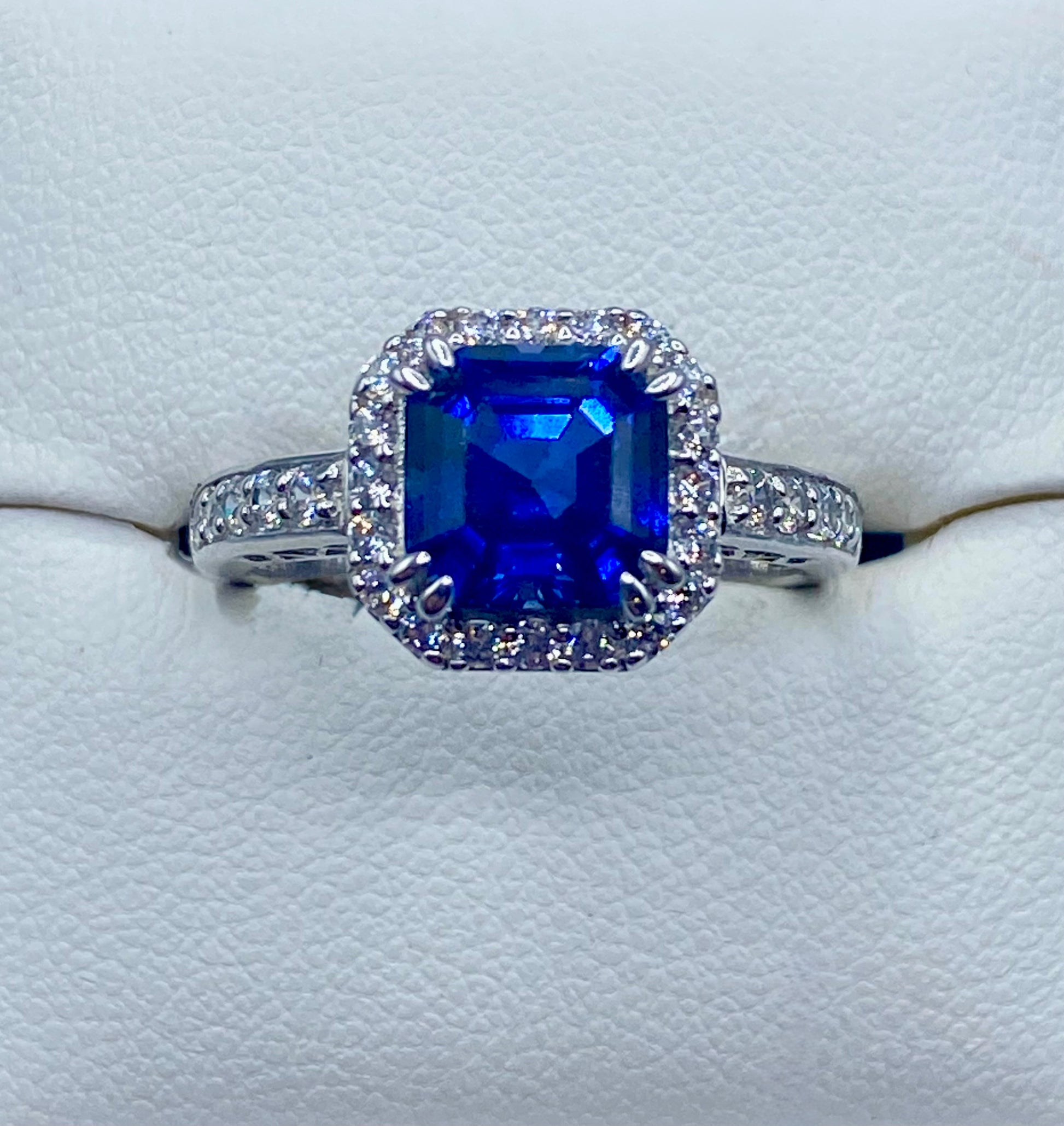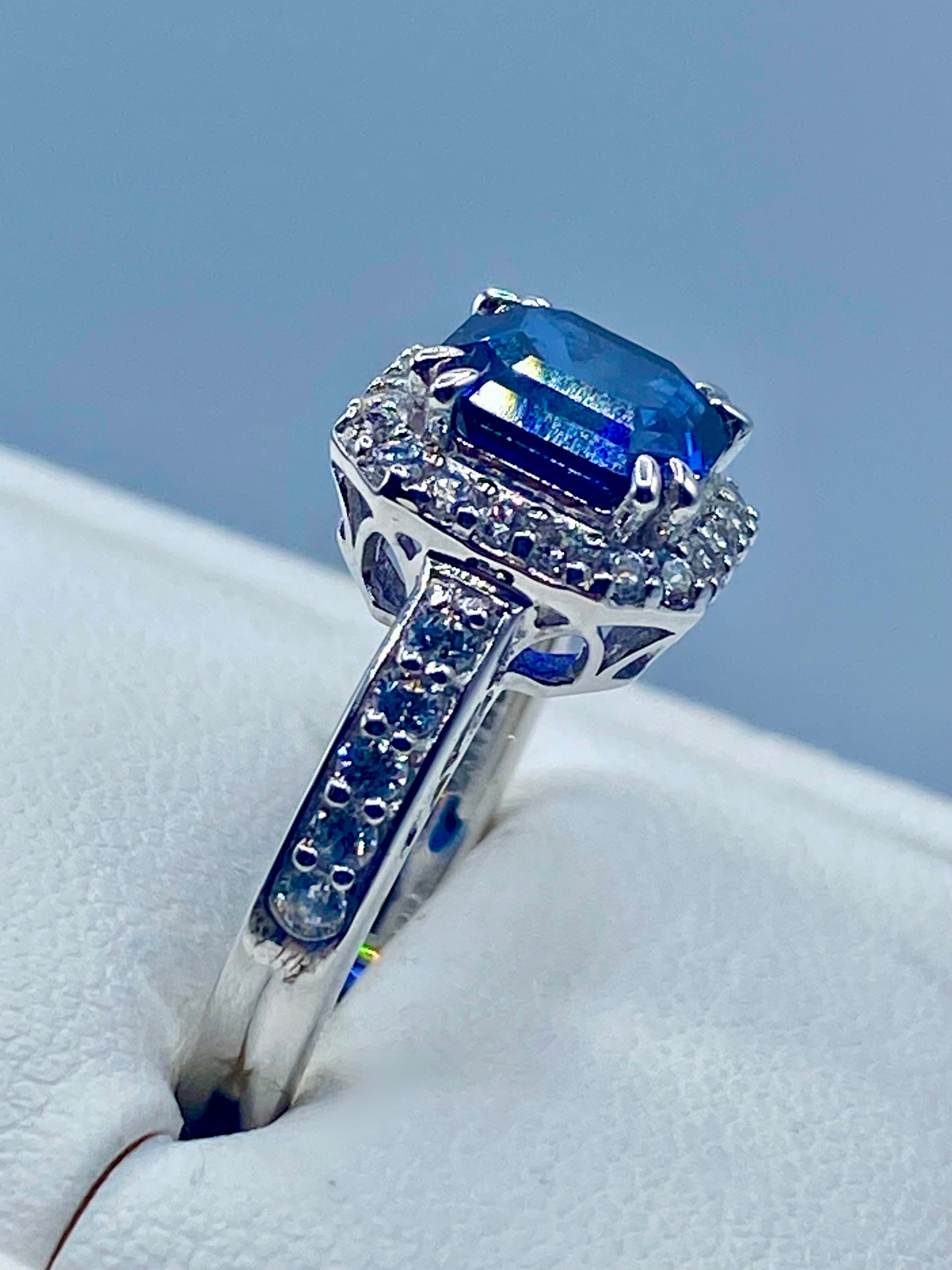 Sterling Silver Dark Blue Square Sapphire & CZ Ring