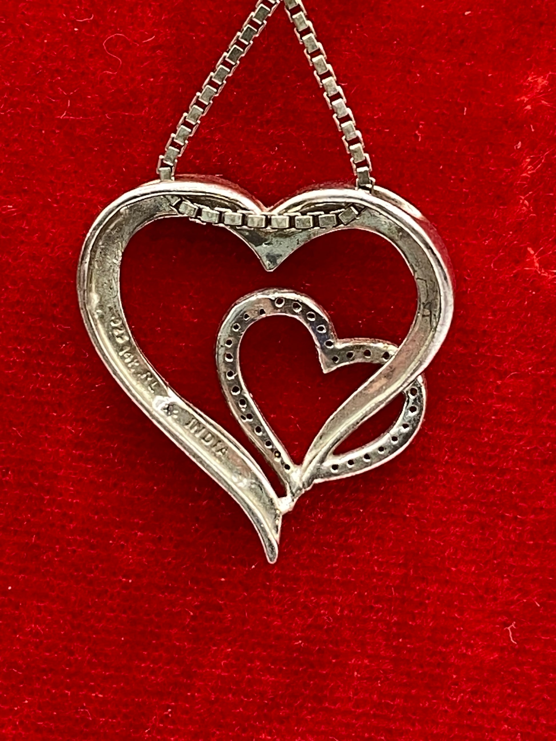 Crafted with care, this Sterling Silver Diamond & 14K Heart Necklace offers both beauty and quality. The stunning combination of silver and 14K gold paired with delicate diamonds makes for a timeless piece. Each piece is marked with "925 14K RL India", ensuring authenticity and value. Elevate any outfit with this elegant necklace.