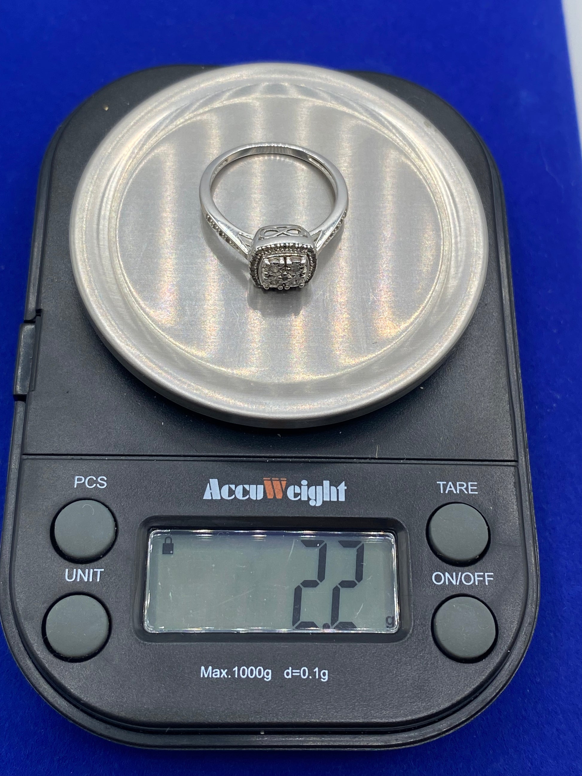 Sterling Silver & Diamond Square Ring
