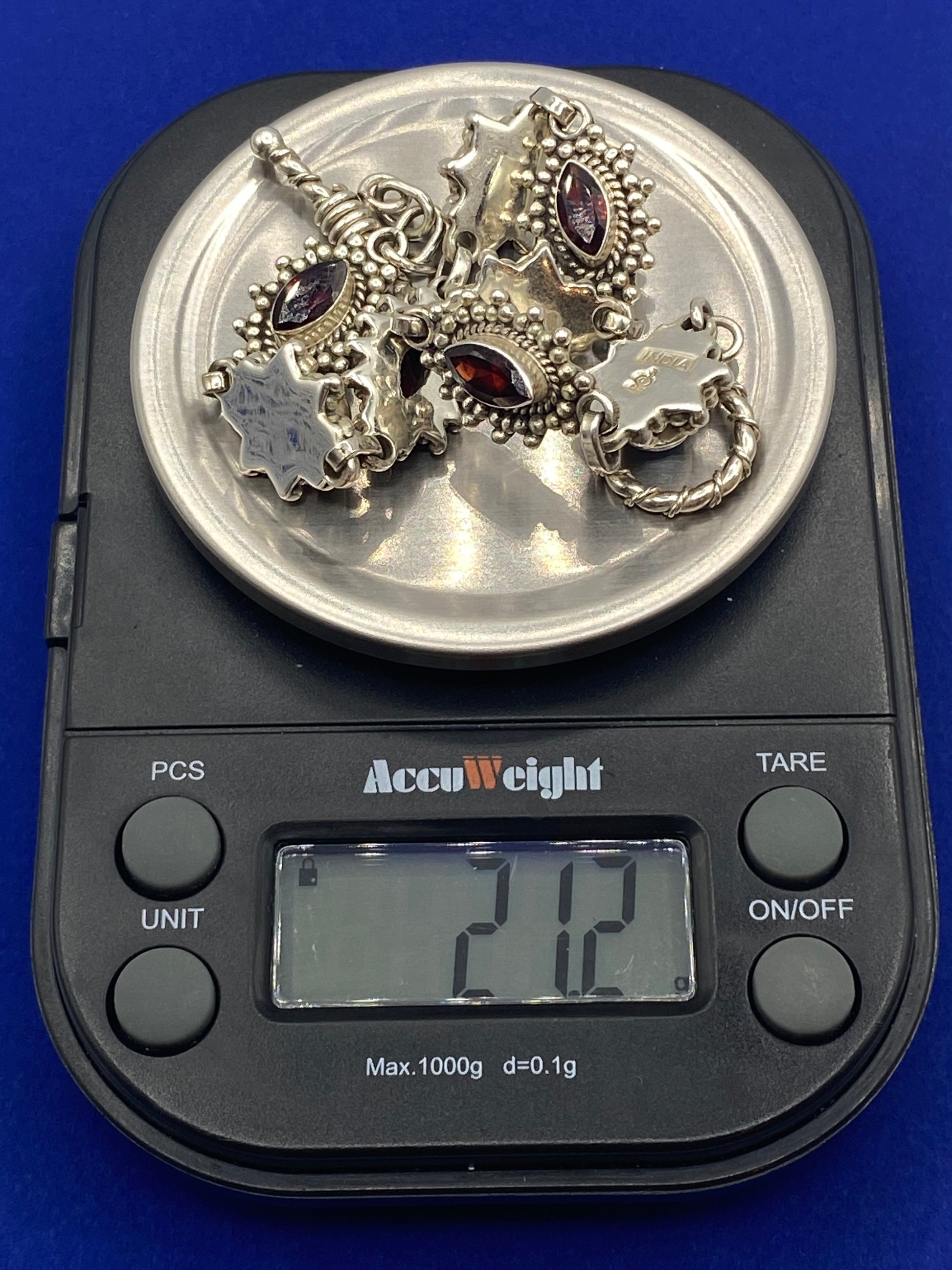 Expertly crafted by Doug Paulus, this bracelet features stunning genuine garnet and moonstone gems set in high-quality sterling silver. At 21.2 grams and 7 inches long, it is the perfect accessory for any occasion. Elevate your jewelry collection with this exquisite piece.