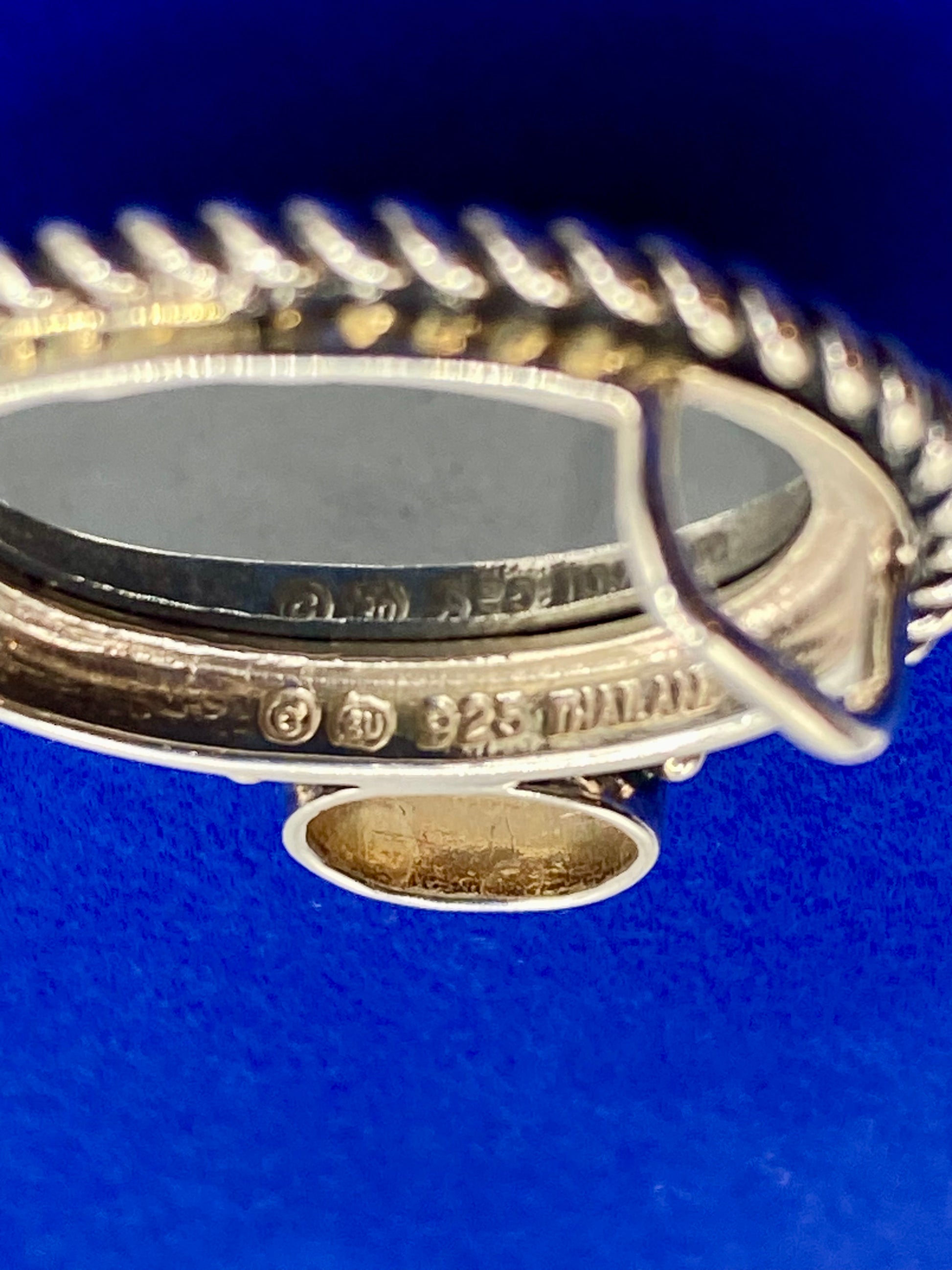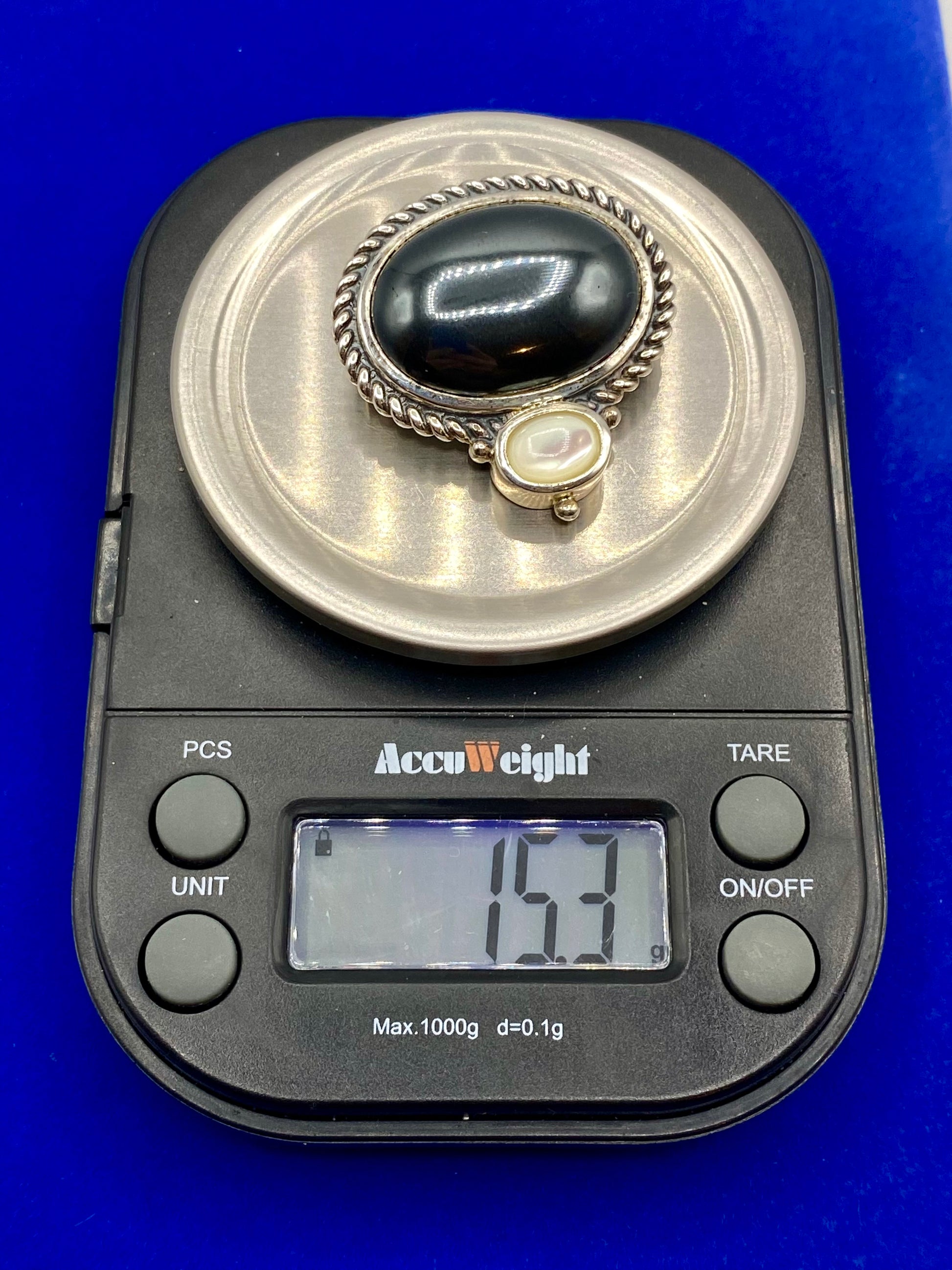 This Sterling Silver Pendant weighs 15.3 grams and is an inch long. Made with Hematite and Mother of Pearl, it exudes an elegant and timeless appeal. Perfect for everyday wear or special occasions, it adds a touch of sophistication to any outfit.