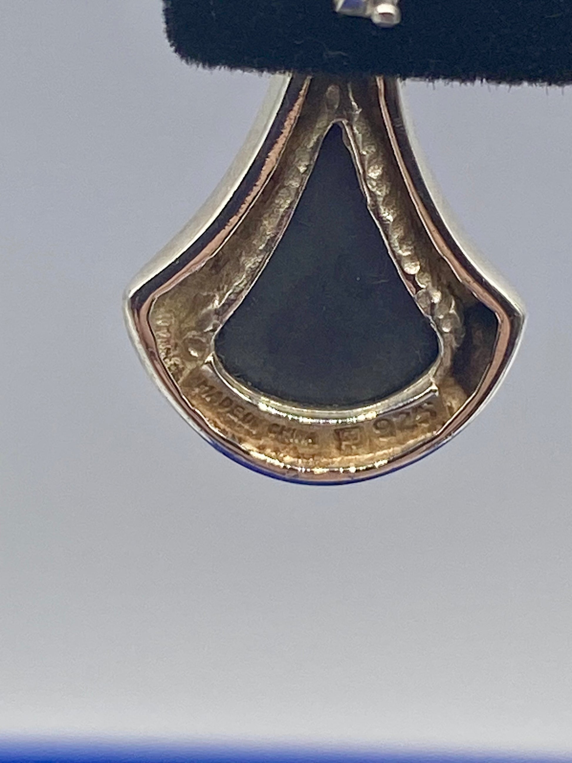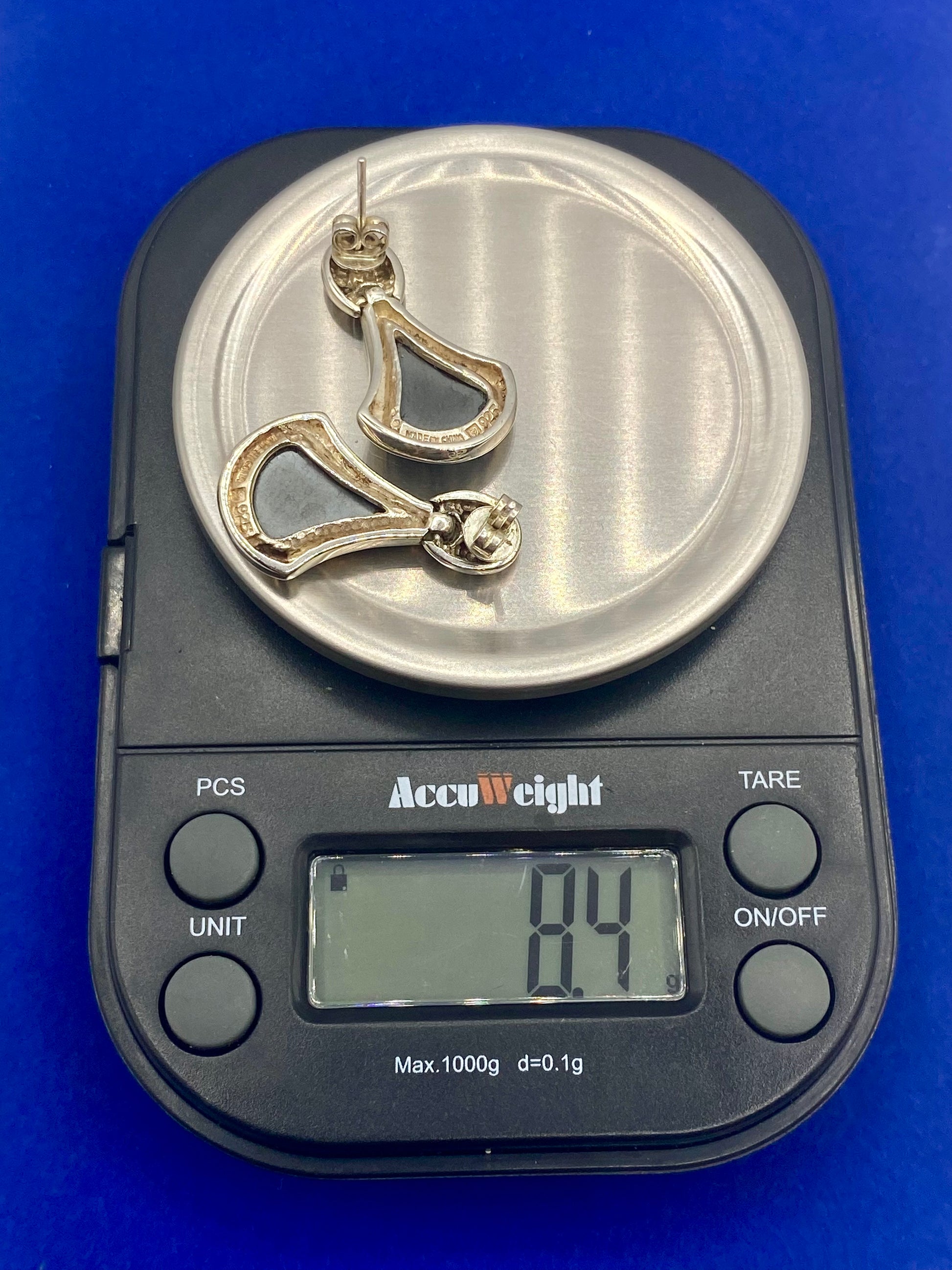 Expertly crafted with sleek sterling silver and polished hematite, these dangle drop earrings weigh 8.4 grams and measure .5 inches in length. Elevate your style with the sophisticated touch of these stunning earrings.