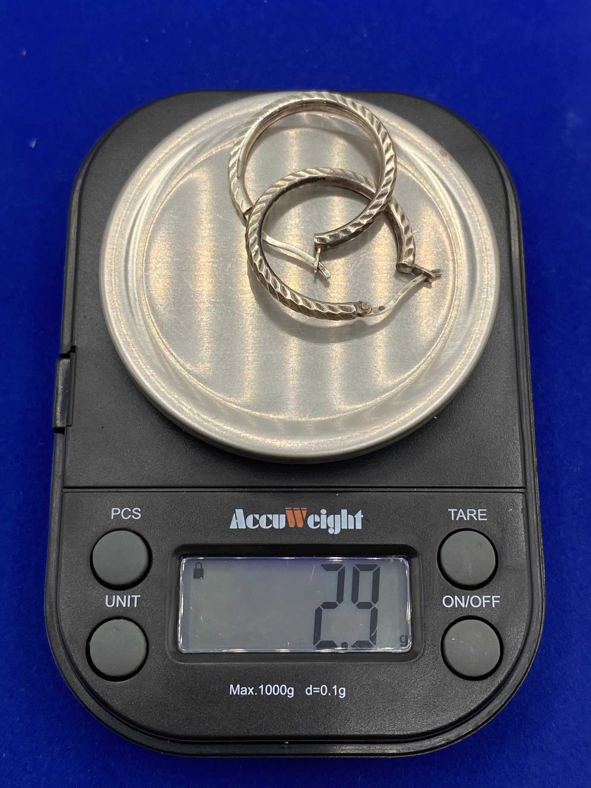 The earrings are about an inch long and weighs about 2.9 grams.