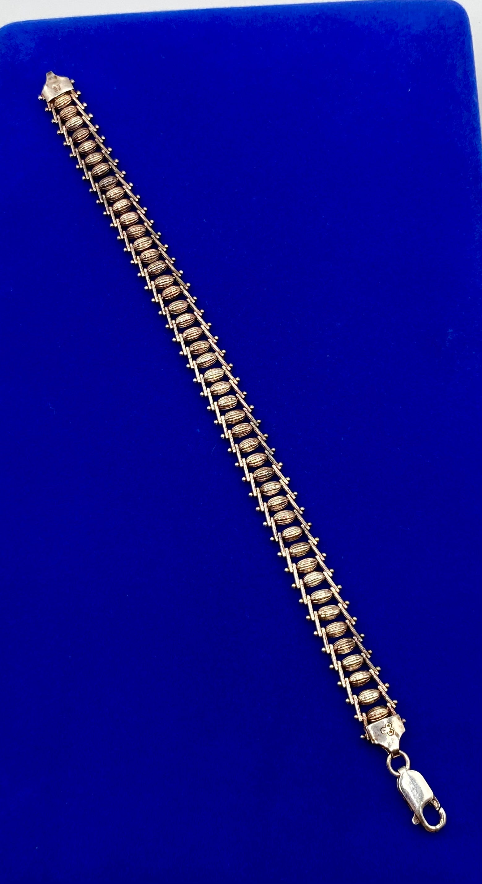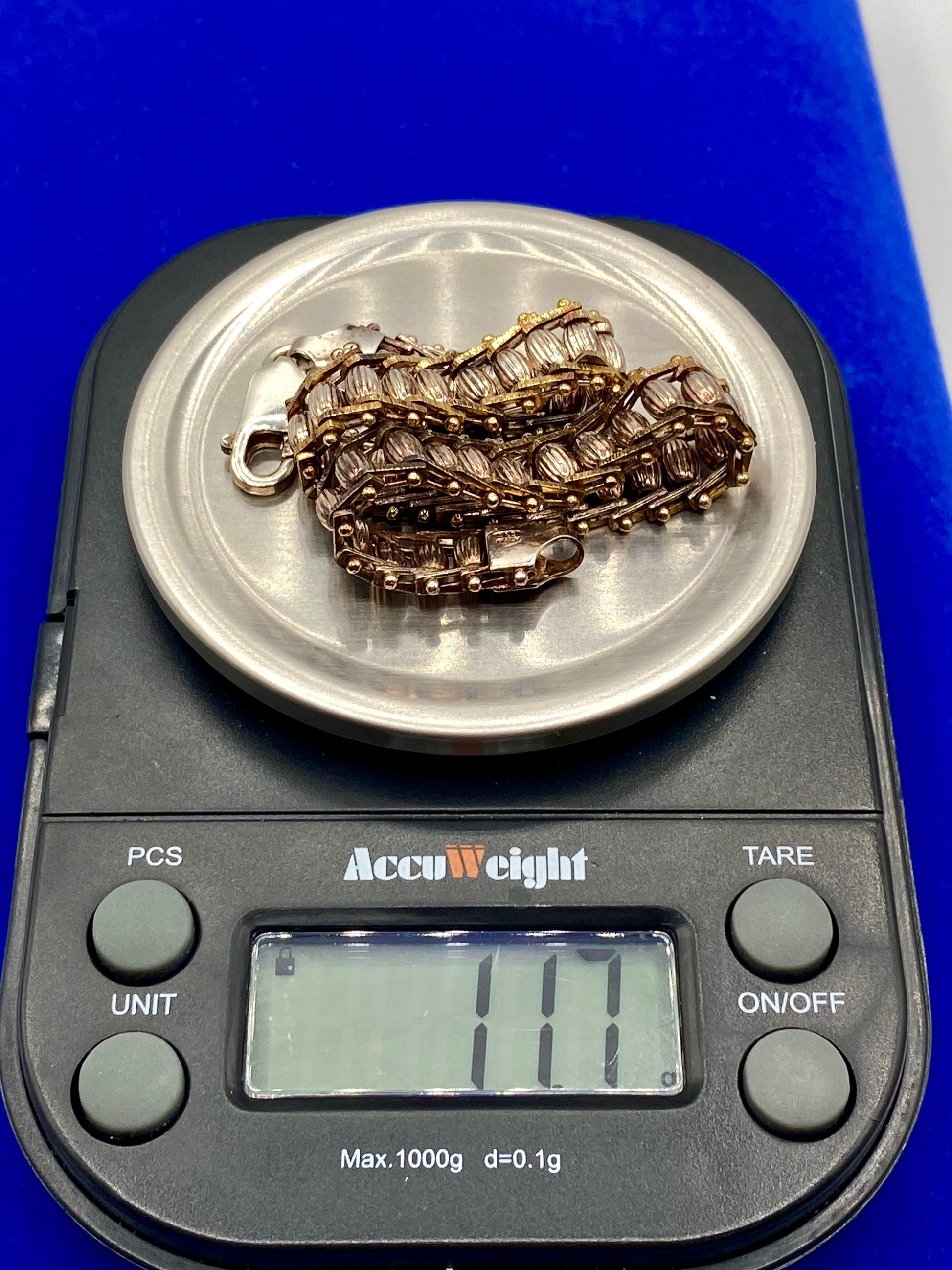 This elegant Sterling Silver Interlocking Bead Bracelet weighs 11.7 grams and measures 6.5 inches in length. The unique interlocking bead design adds a touch of sophistication to any outfit. Made with high-quality sterling silver, this bracelet is sure to be a lasting addition to your jewelry collection.