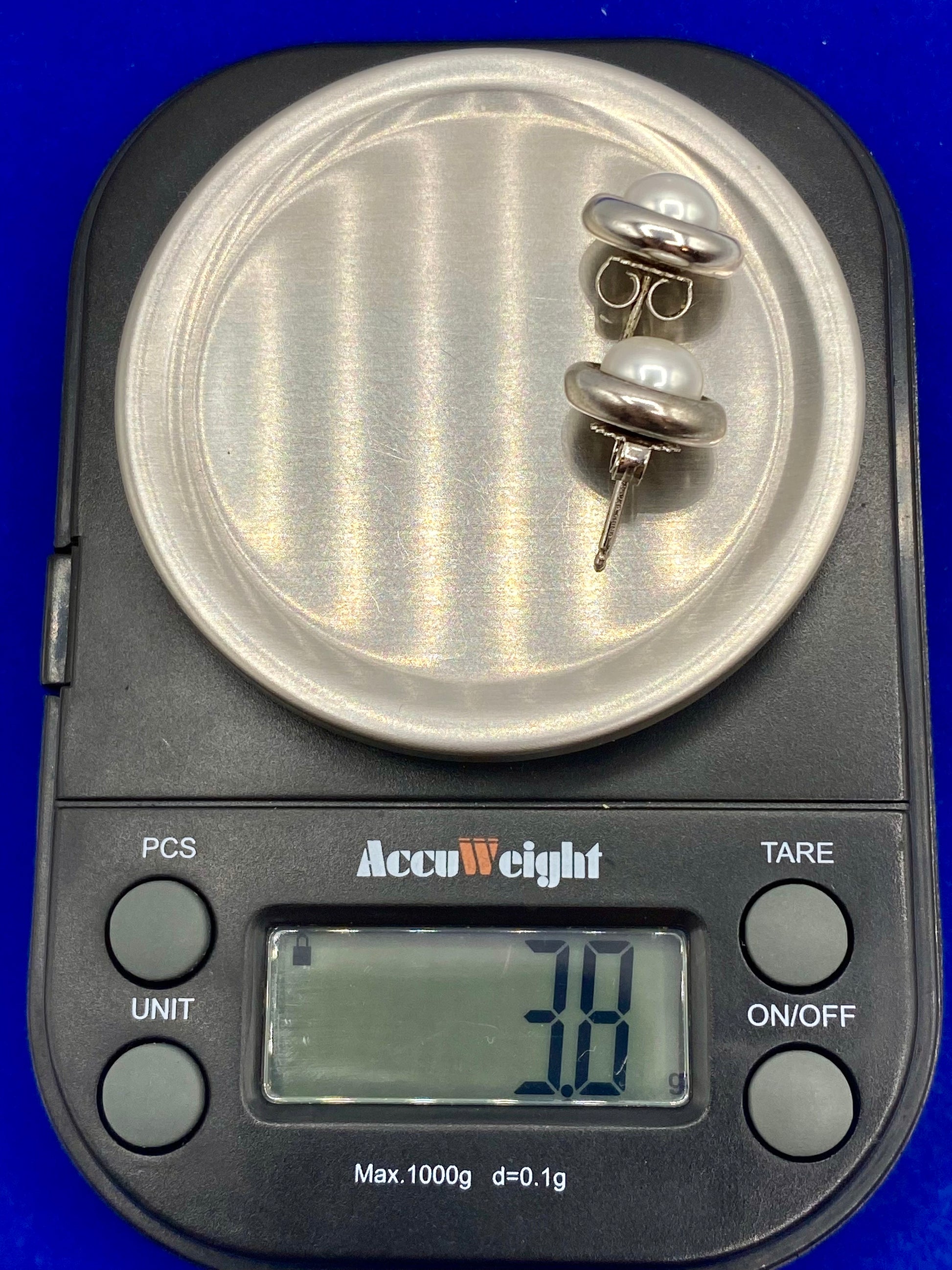 These stud earrings, made of 925 sterling silver and adorned with freshwater pearls, are both elegant and lightweight at 3.8 grams. With a length of .5 inches, they're perfect for adding a touch of sophistication to any outfit.