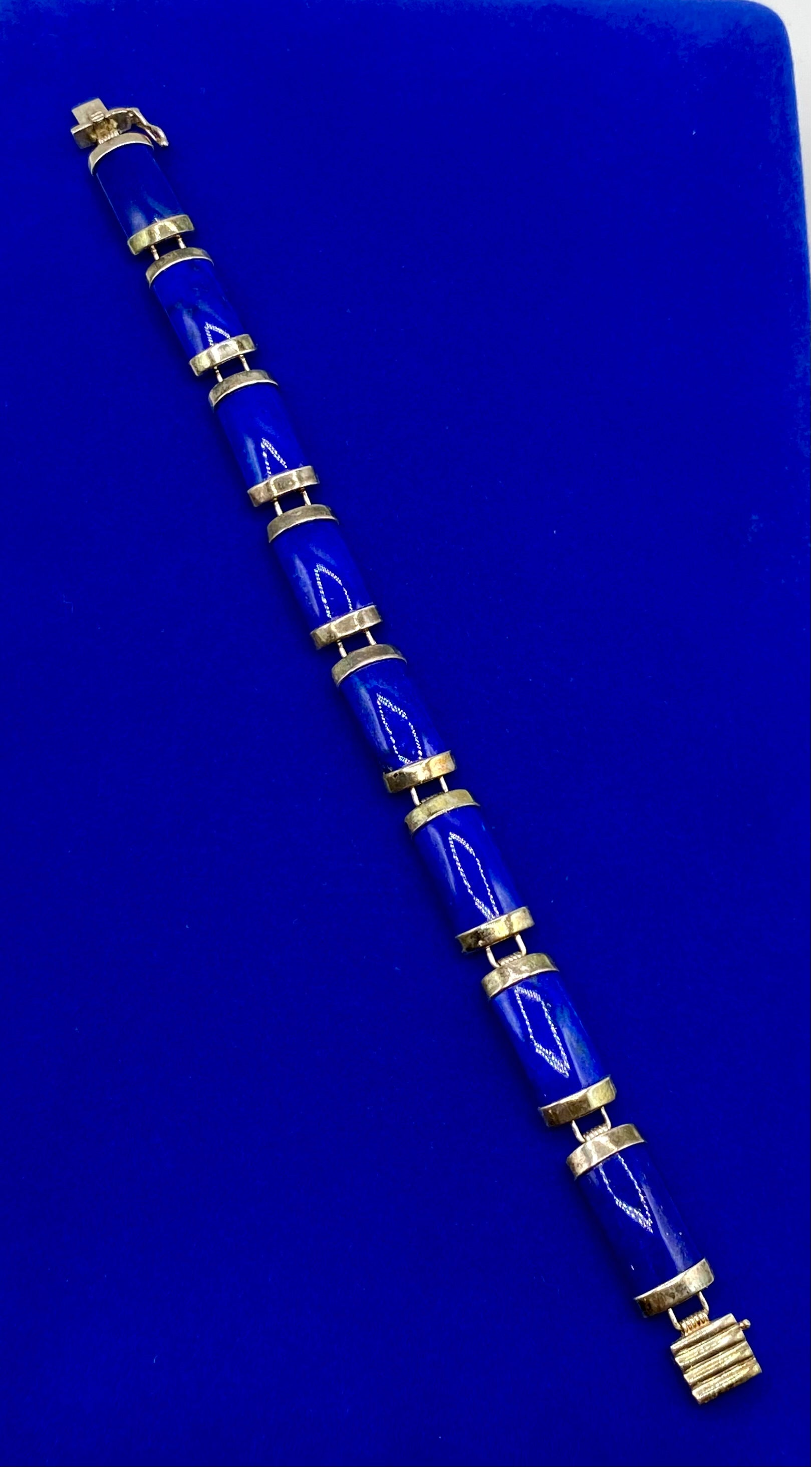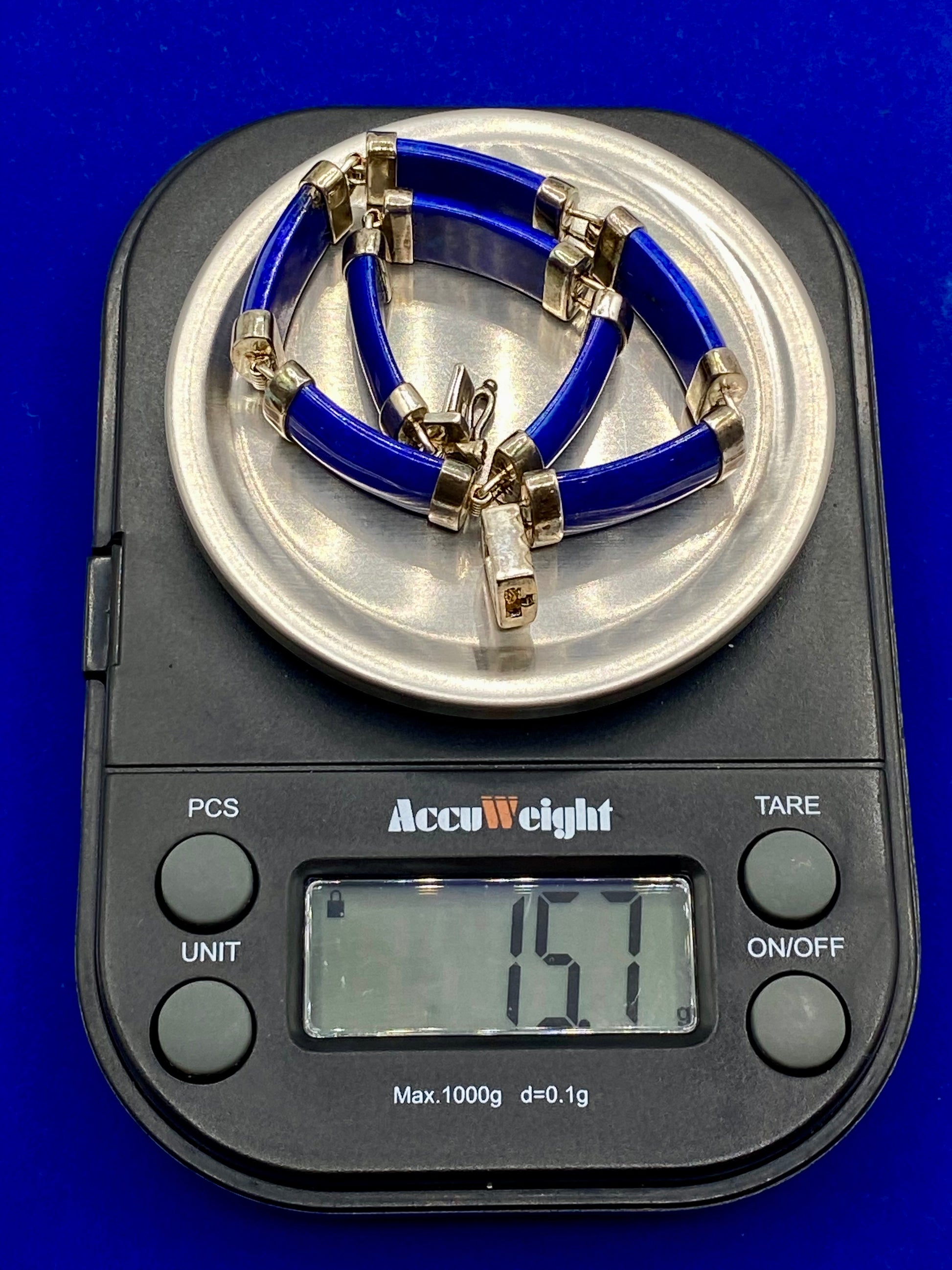 Expertly crafted with 925 sterling silver and genuine lapis panels, this beautiful bracelet weighs 15.7 grams and measures 7 inches in length. Elevate any outfit with this timeless piece that exudes elegance and sophistication.