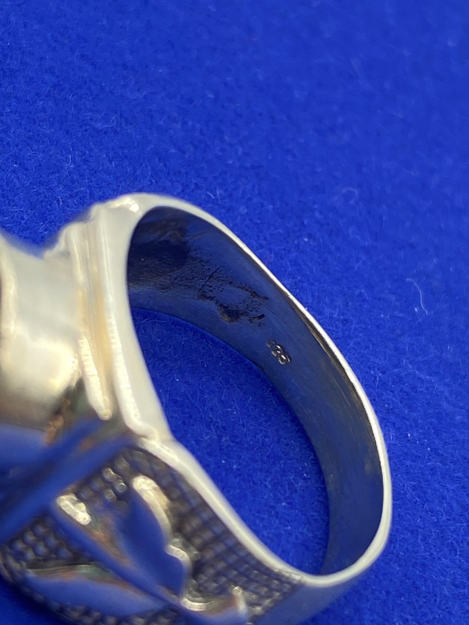 This expertly-crafted Sterling Silver Lapis Ring is marked with a 925 stamp and comes in a size 8. Made with high-quality sterling silver and a striking lapis stone, this ring combines beauty and longevity for a truly exceptional piece of jewelry. Perfect for any occasion, this ring is guaranteed to impress.