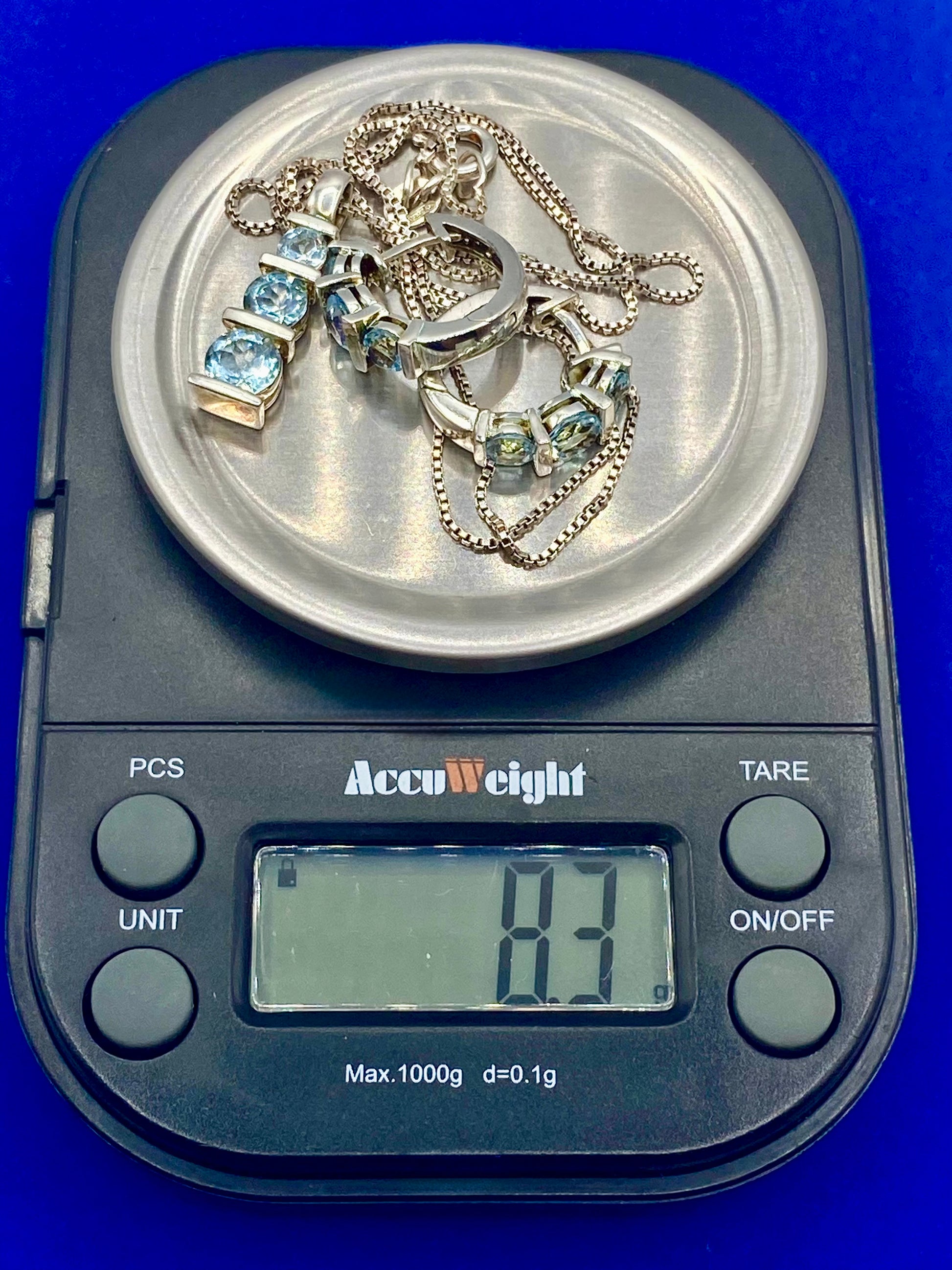 Crafted from high-quality sterling silver, this stunning jewelry set features sparkling light blue topaz stones. The delicate earrings, measuring at .5 inches in length, perfectly complement the 18-inch necklace. Elevate your style with this elegant and timeless set.