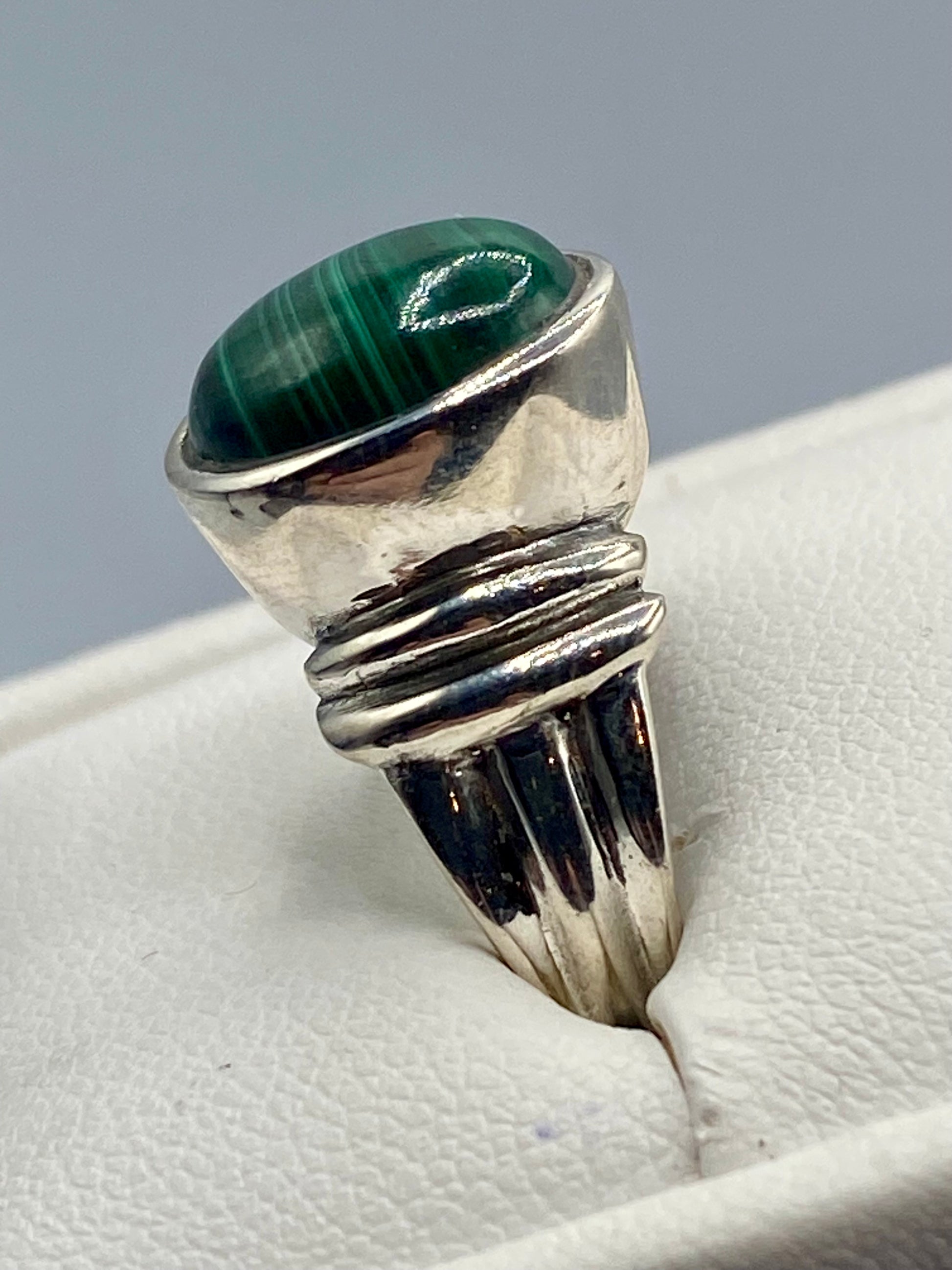This stunning Sterling Silver Malachite Ring is the perfect addition to any jewelry collection. Made from high-quality 925 silver and weighing 5.5 grams, this ring is both beautiful and durable. With its stunning malachite stone and elegant size 8 design, it is sure to catch the eye of any fashion enthusiast.