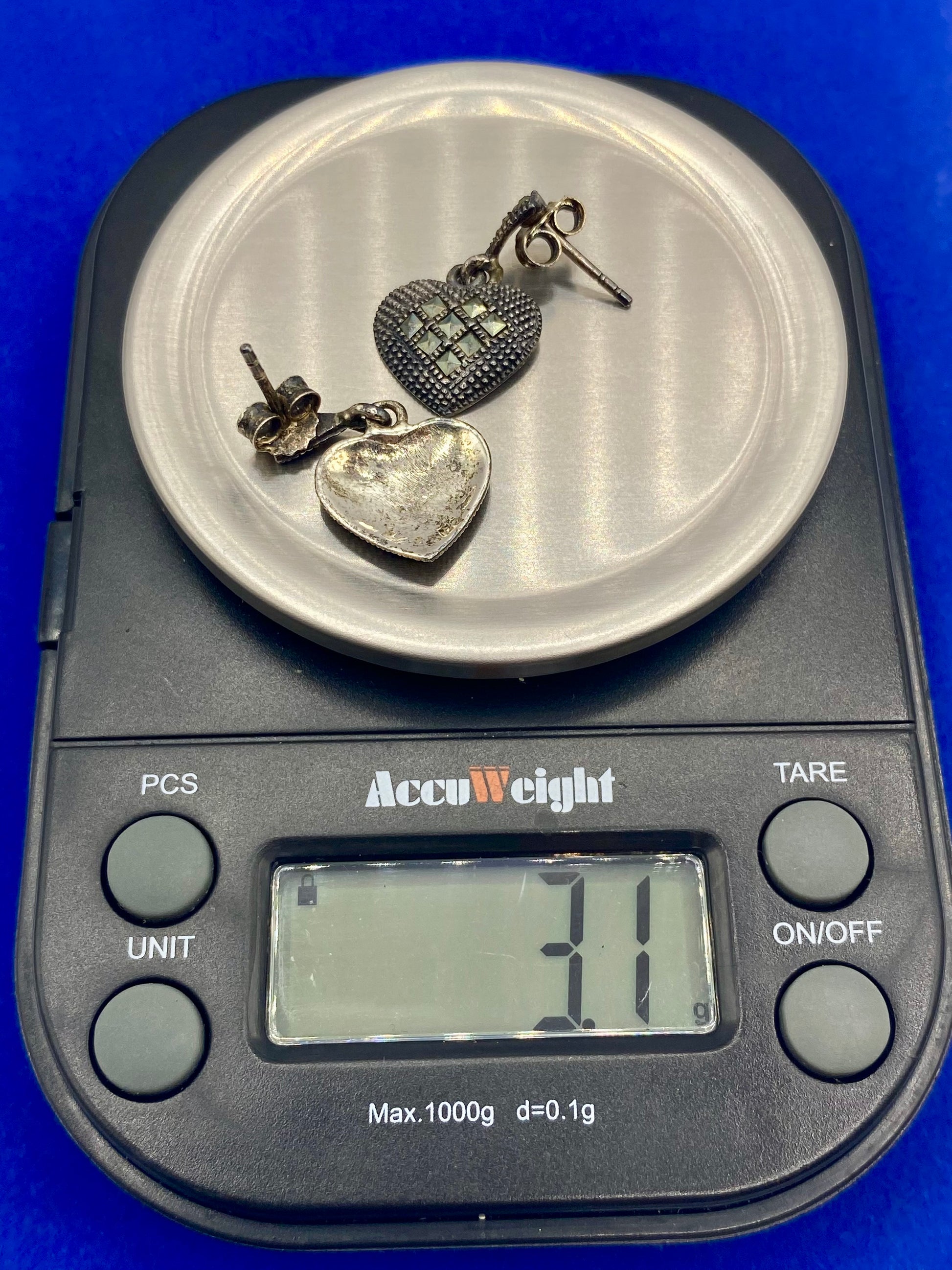 Sterling Silver Marcasite Heart Earrings Dangle Drop Earrings