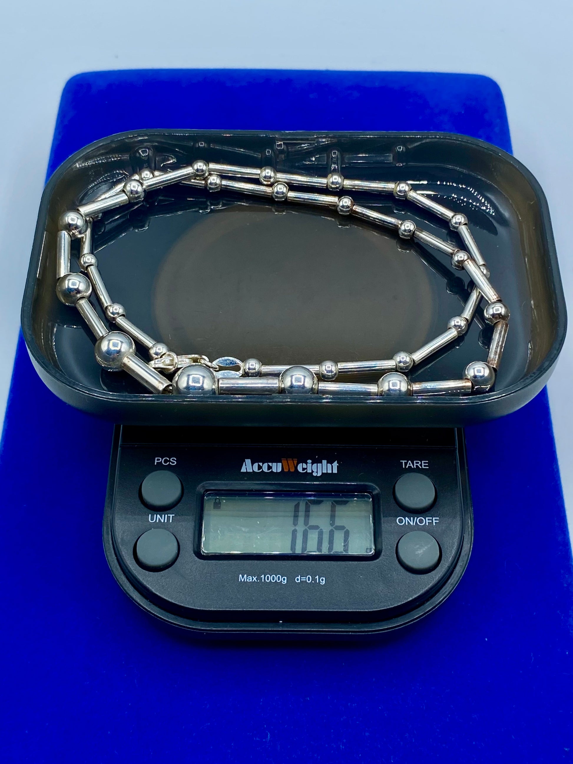 This Sterling Silver Milor Italy Beaded Necklace weighs 16.6 grams and measures 16 inches in length. Made with high-quality materials, this necklace is both durable and elegant. Perfect for adding a touch of sophistication to any outfit.