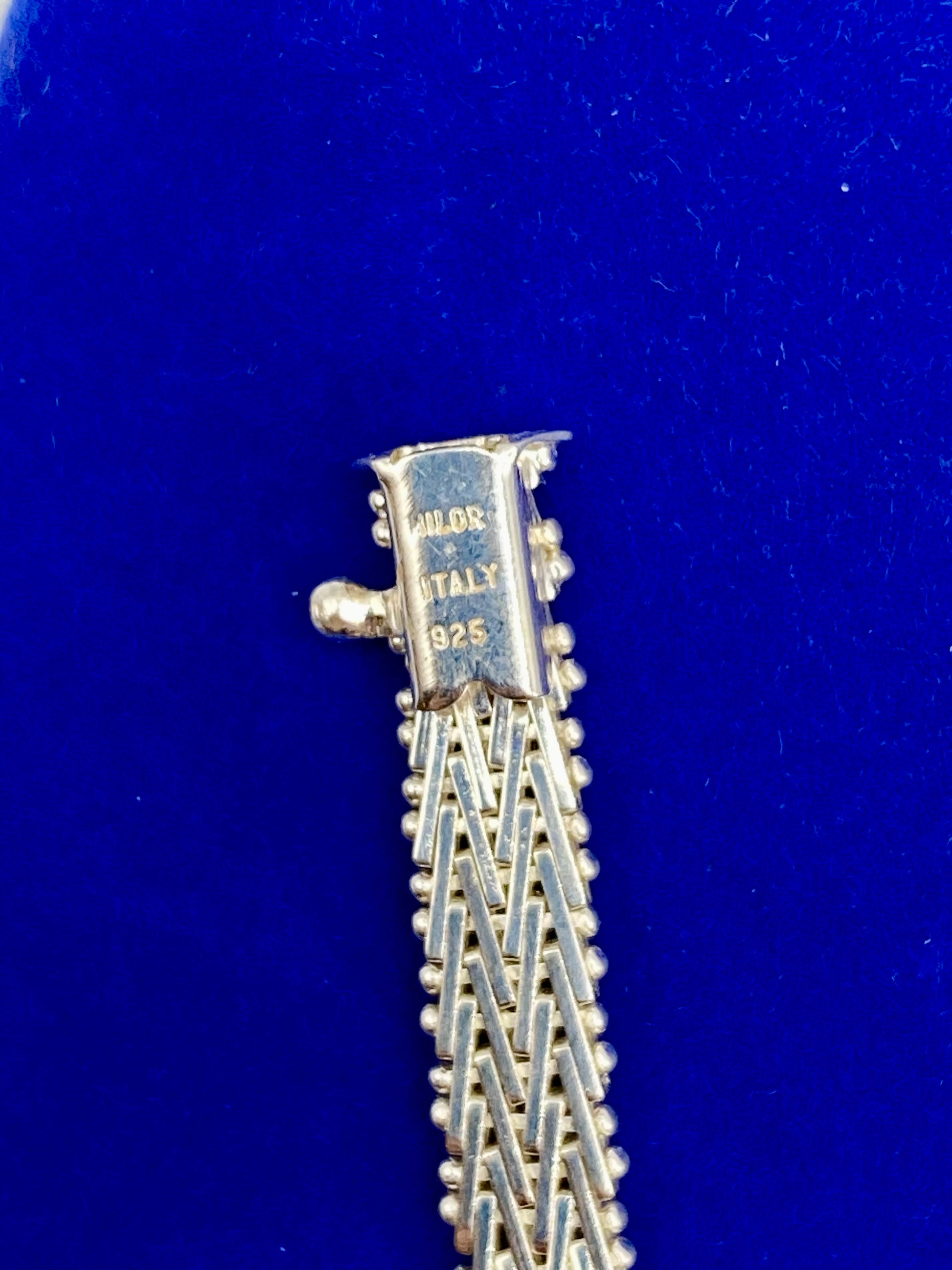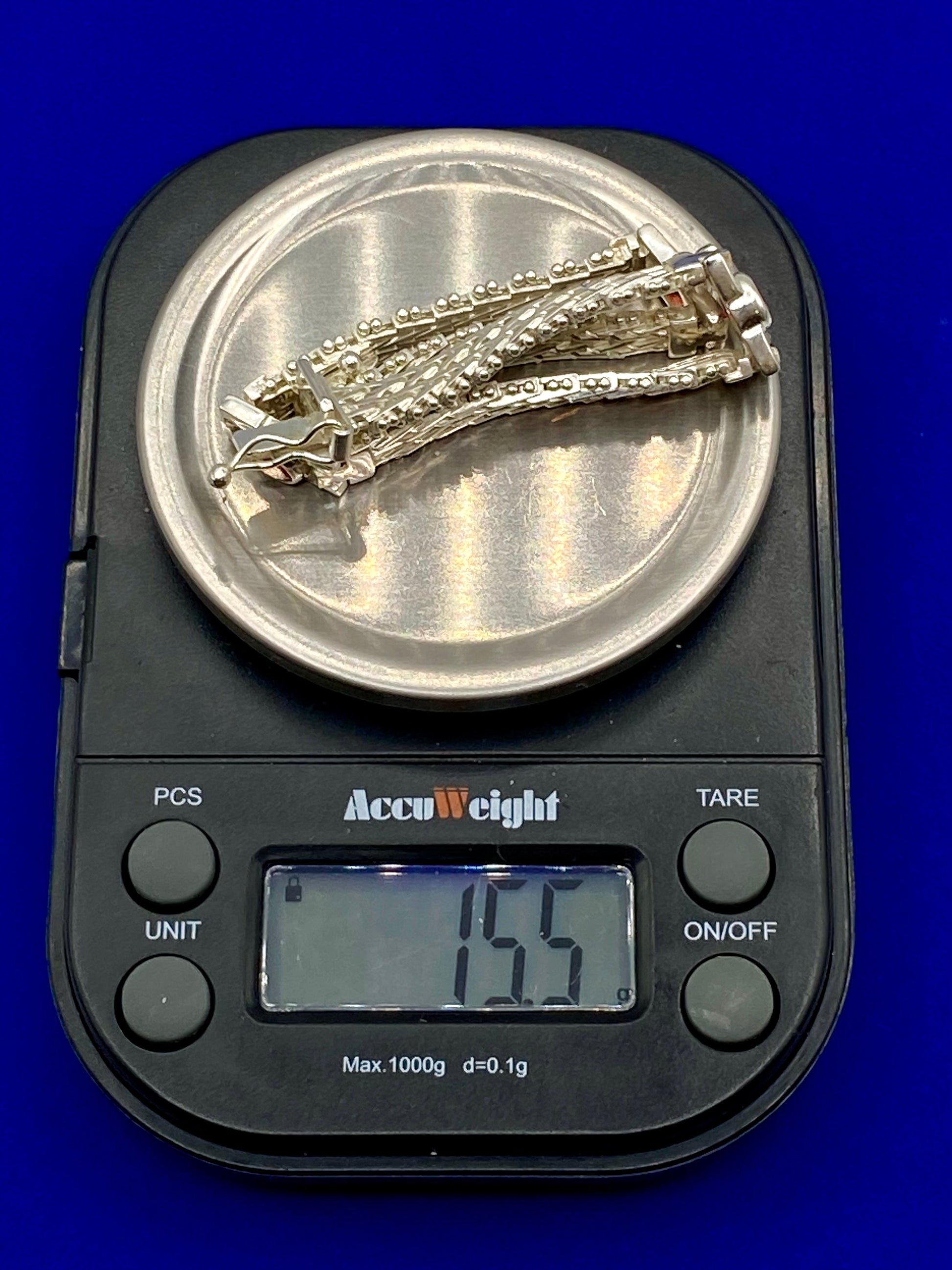 This stunning Sterling Silver Milor Italy Garnet Bracelet boasts 15.5 grams of high-quality sterling silver craftsmanship. With a length of 7.5 inches, it is the perfect size for everyday wear. Adorned with genuine garnet gemstones, this bracelet exudes elegance and sophistication. Elevate your jewelry collection with this exquisite piece.
