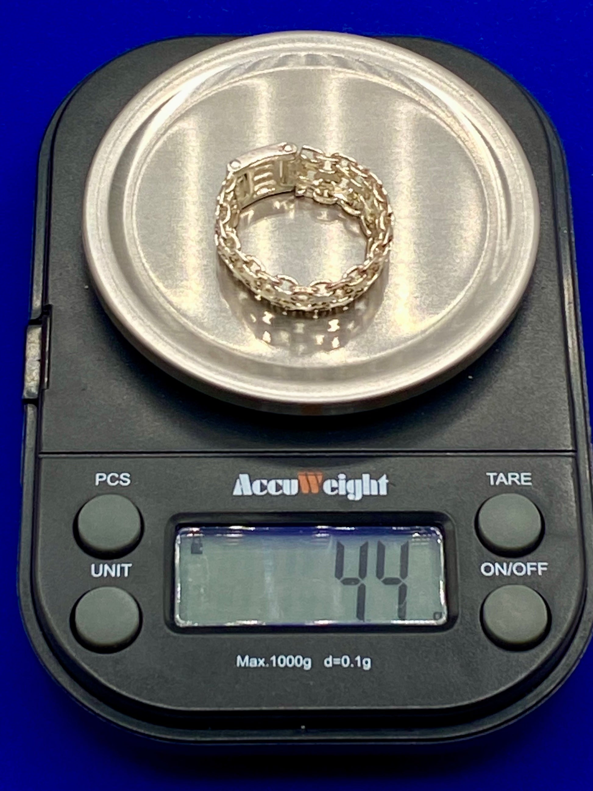 This elegant Sterling Silver Milor Italy Mesh Ring weighs 4.4 grams and is a size 8. Made in Italy, its intricate mesh design offers a unique twist to traditional rings. Crafted from high-quality sterling silver, this ring is a perfect addition to any jewelry collection.