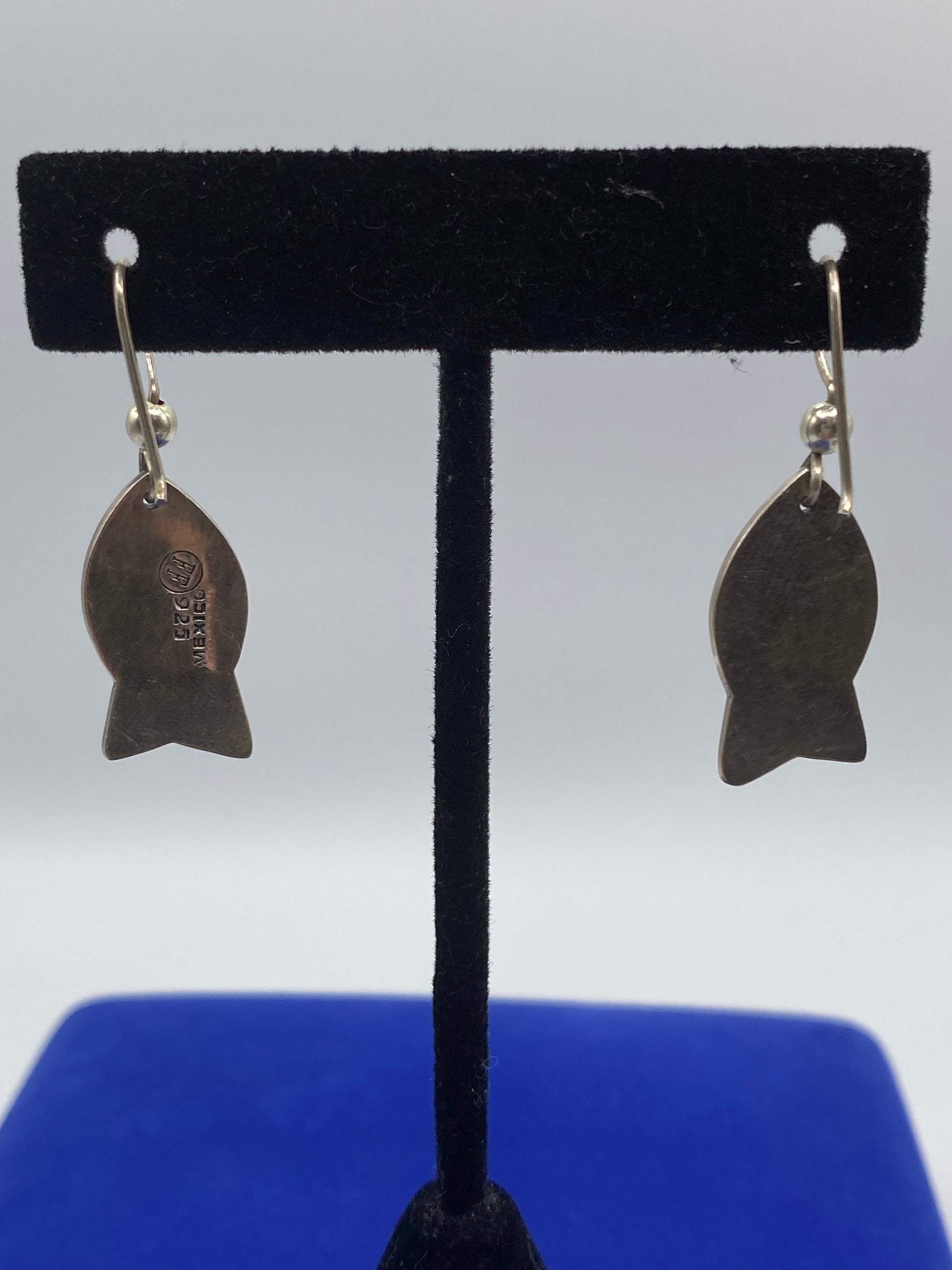Sterling Silver Modernist Far Fetched Fish Dangle Earrings