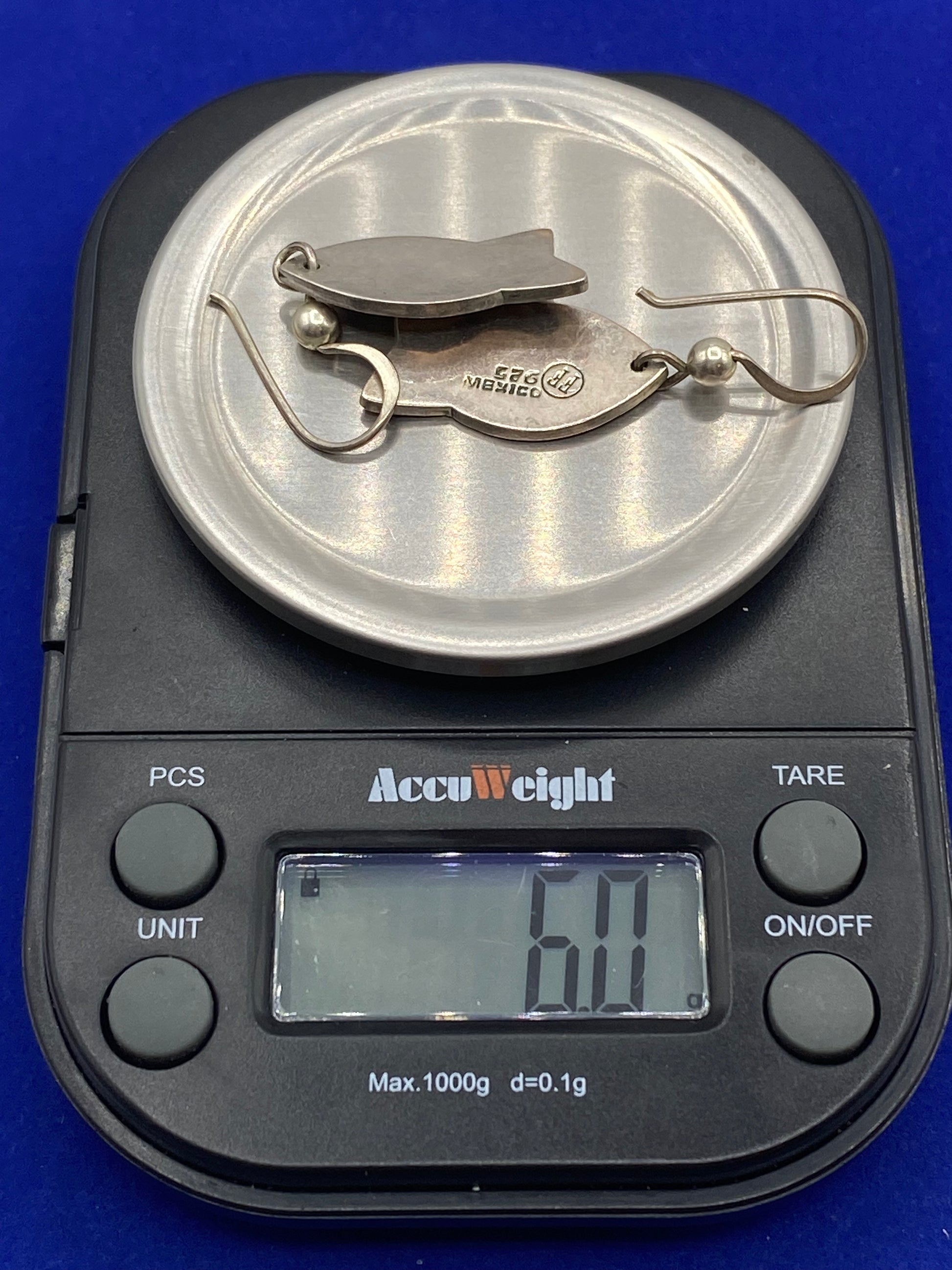 The earrings are about 1.25 inches long and weighs about 6 grams.