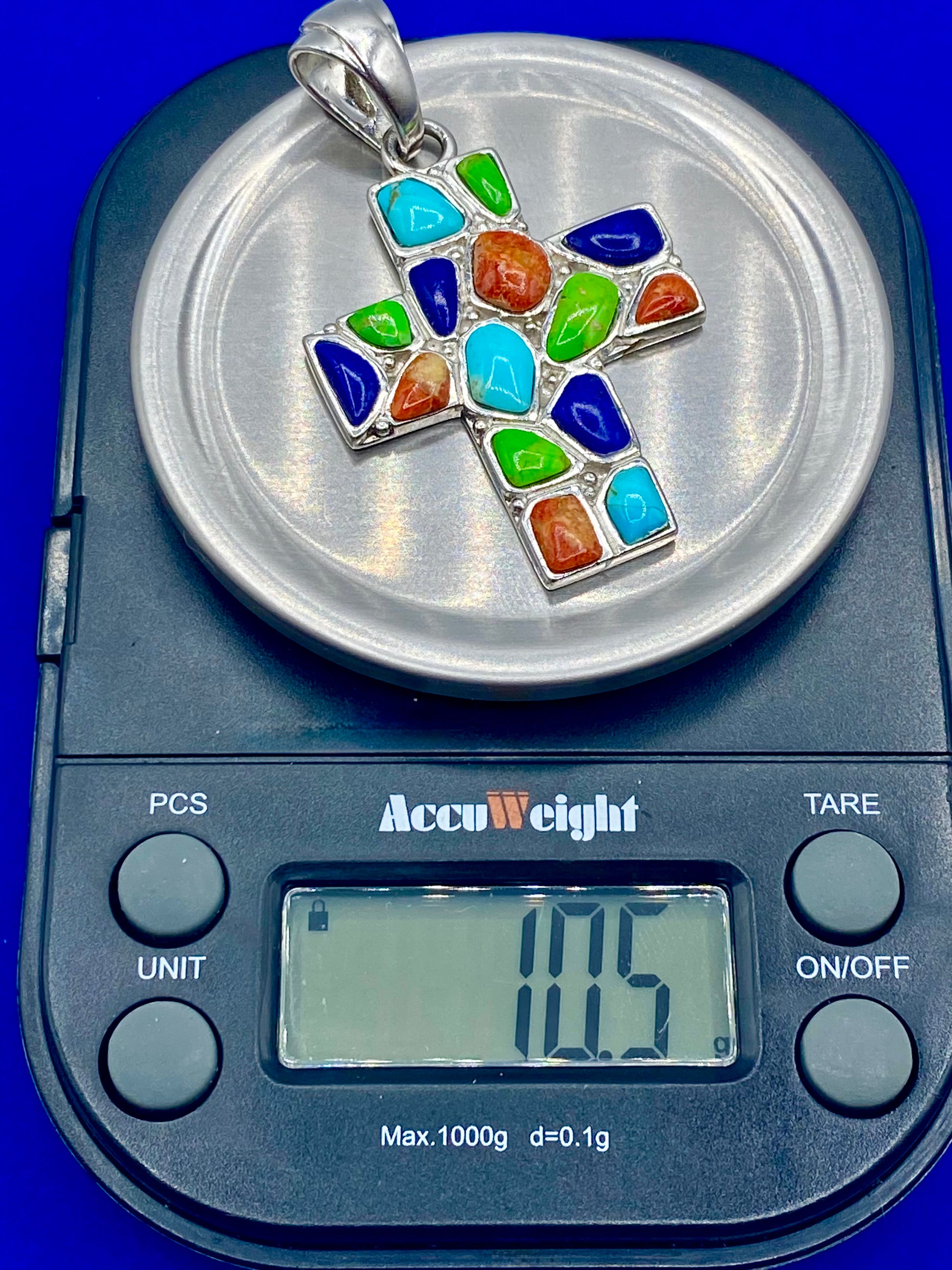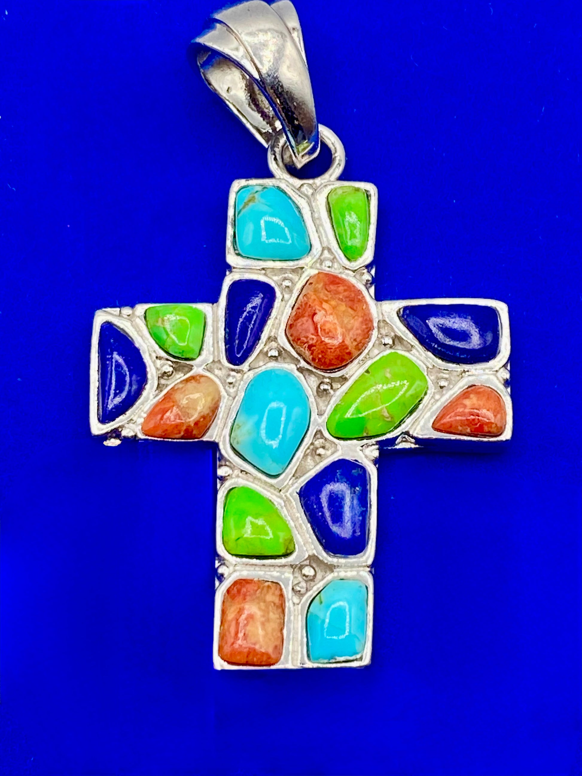 Sterling Silver Multi Gemstone NK Cross Pendant