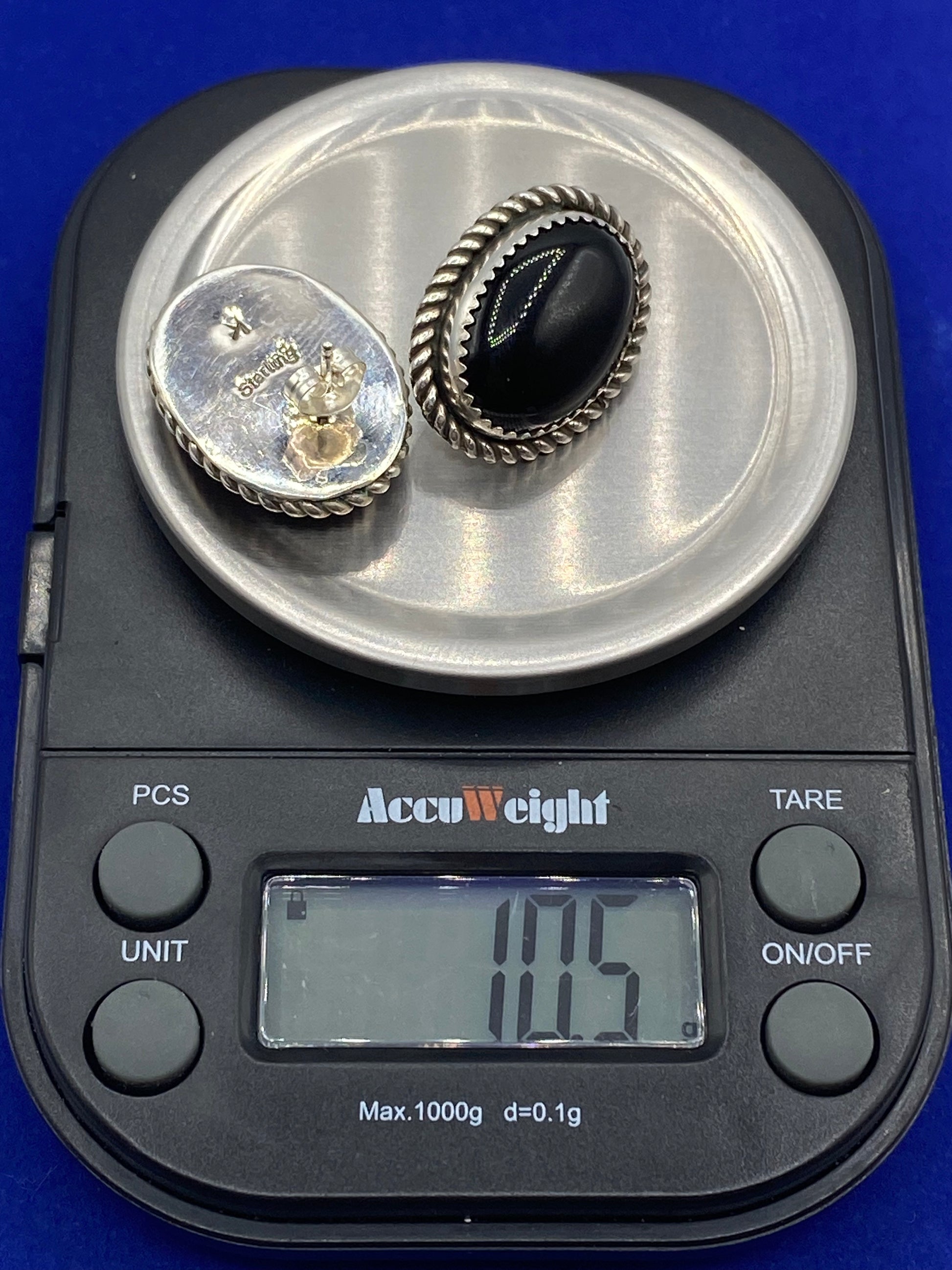 Expertly crafted, these Sterling Silver Navajo Black Onyx Earrings are handcrafted with precision and marked with "K Sterling" for authenticity. The sleek black onyx stones add a touch of elegance, making them a versatile and timeless addition to any wardrobe. Elevate your style with these stunning earrings.