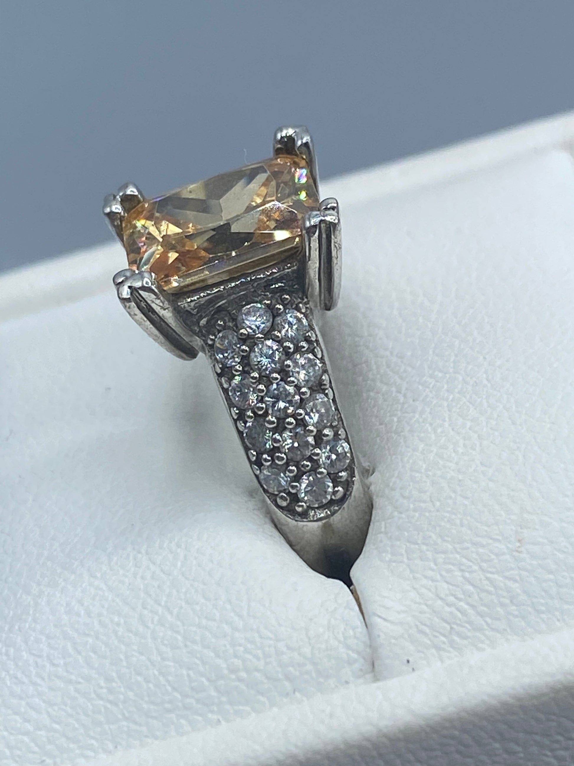 Crafted from high-quality sterling silver, this stunning ring features a vibrant orange cubic zirconia stone. Perfect for adding a pop of color to any outfit, this ring is both elegant and eye-catching. Available in size 6 for a perfect fit. Elevate your style with this luxurious and timeless ring.