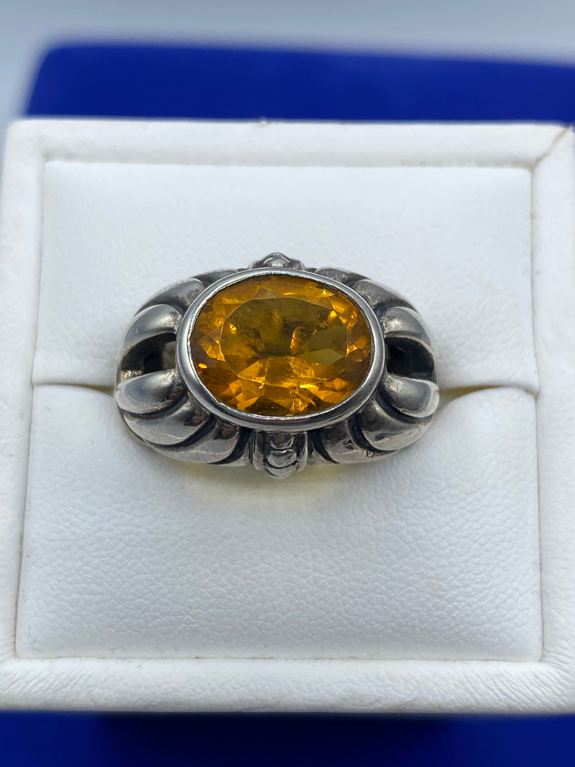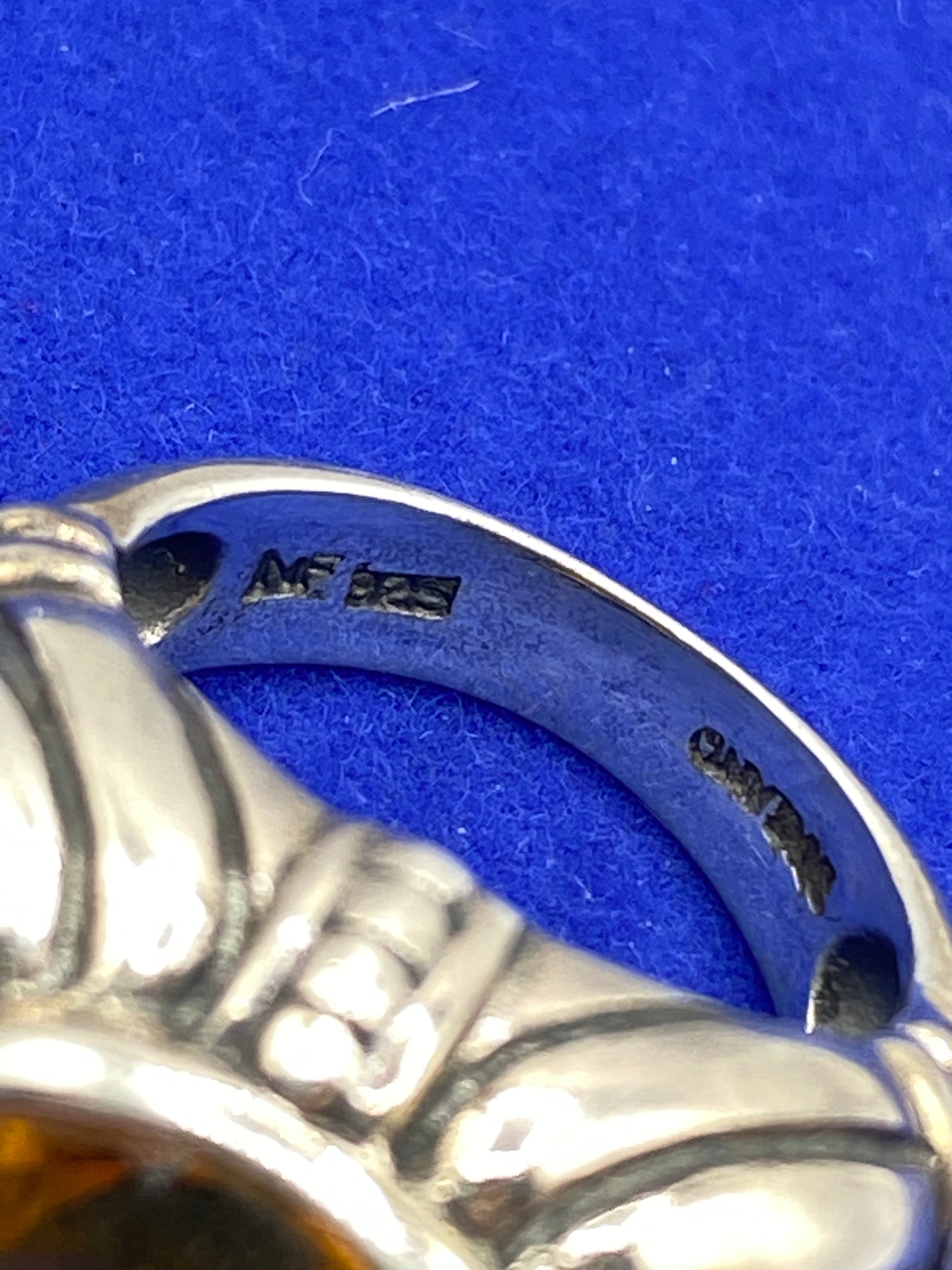 Expertly crafted, this Sterling Silver Orange Glass Ring is a stunning addition to any jewelry collection. Made of high-quality silver and adorned with an eye-catching orange glass stone, it is marked "925 NF" for authenticity. This size 7.25 ring is the perfect blend of elegance and style.