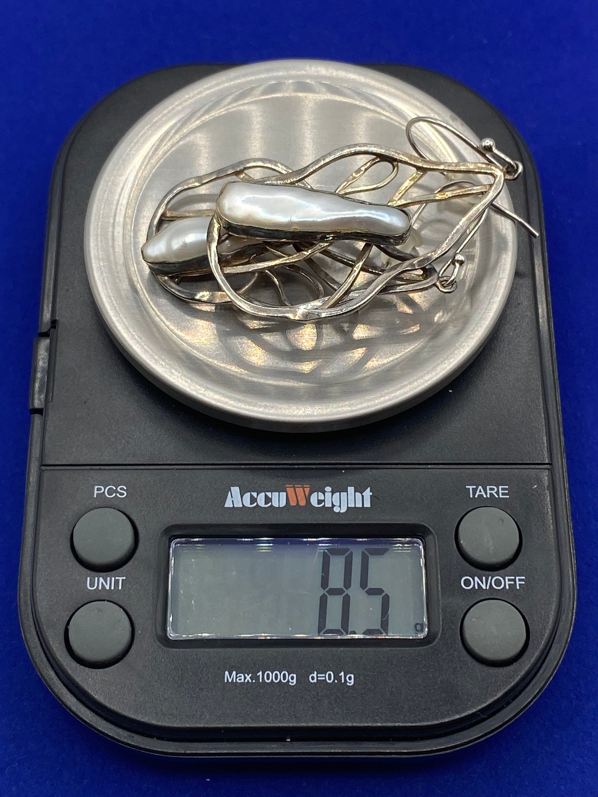 The earrings are about 1.5 inches long and weighs about 8.5 grams.