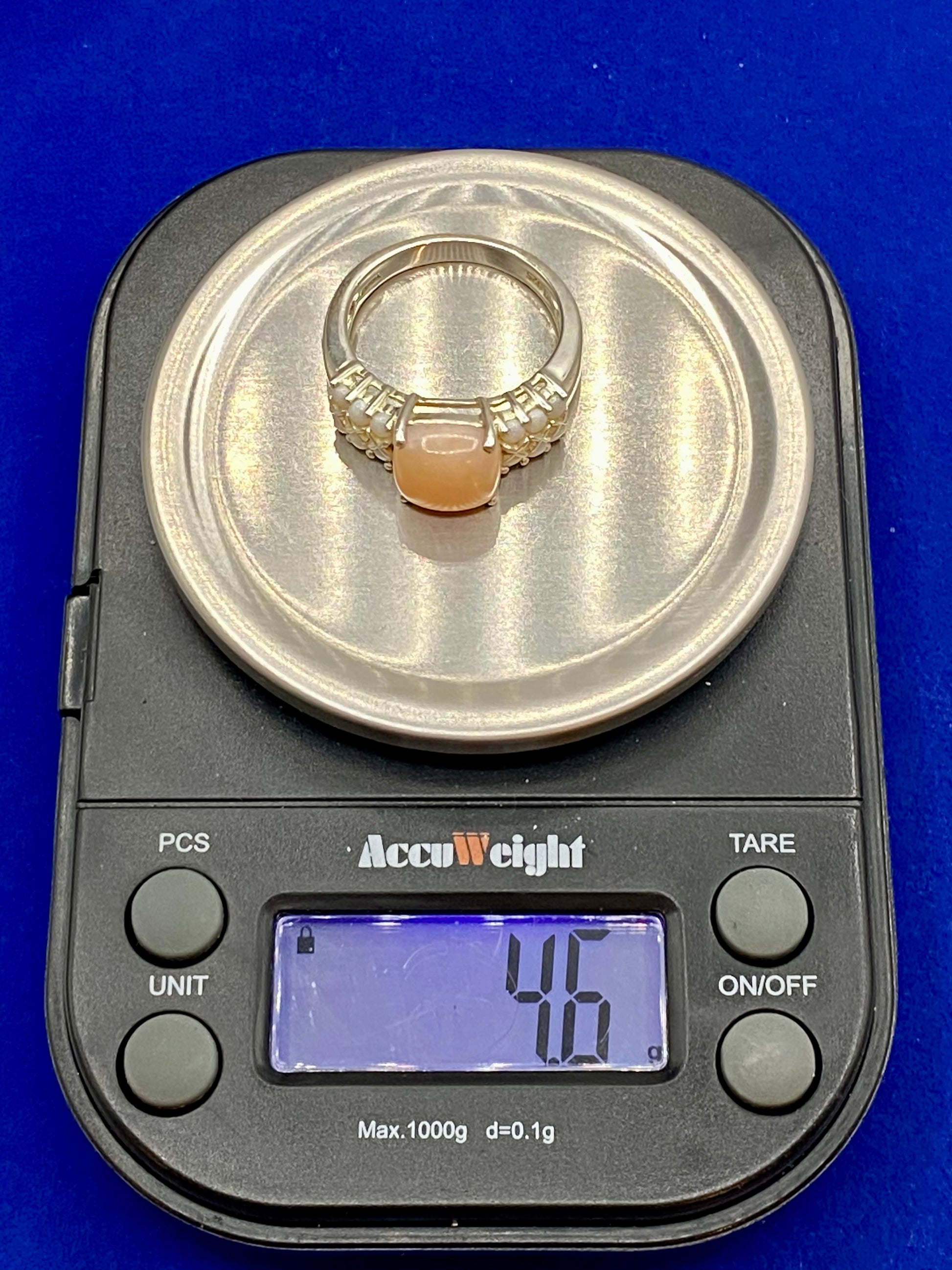 Sterling Silver Rhodium Flashed Square Cabochon Beige Stone Opal Accents Ring