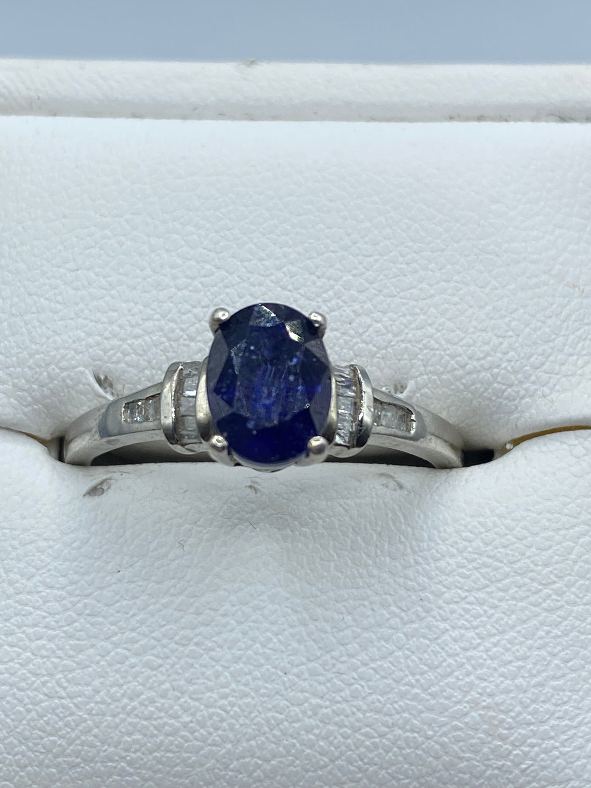 This Sterling Silver Sapphire & Diamond Ring showcases a dazzling sapphire and diamond centerpiece, accented by a "DJoy 925" marking on the band. With its size 9.5 fit, it makes for a stunning and elegant addition to any jewelry collection. Expertly crafted with quality materials, this ring is the perfect mix of sophistication and luxury.