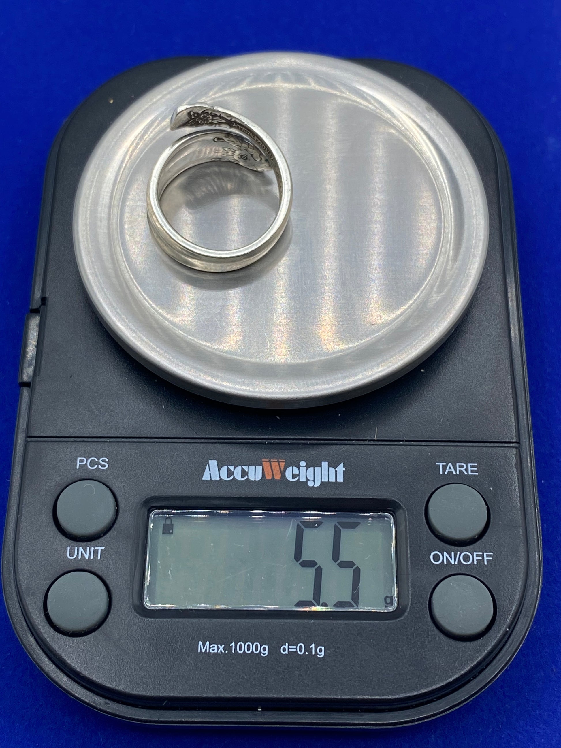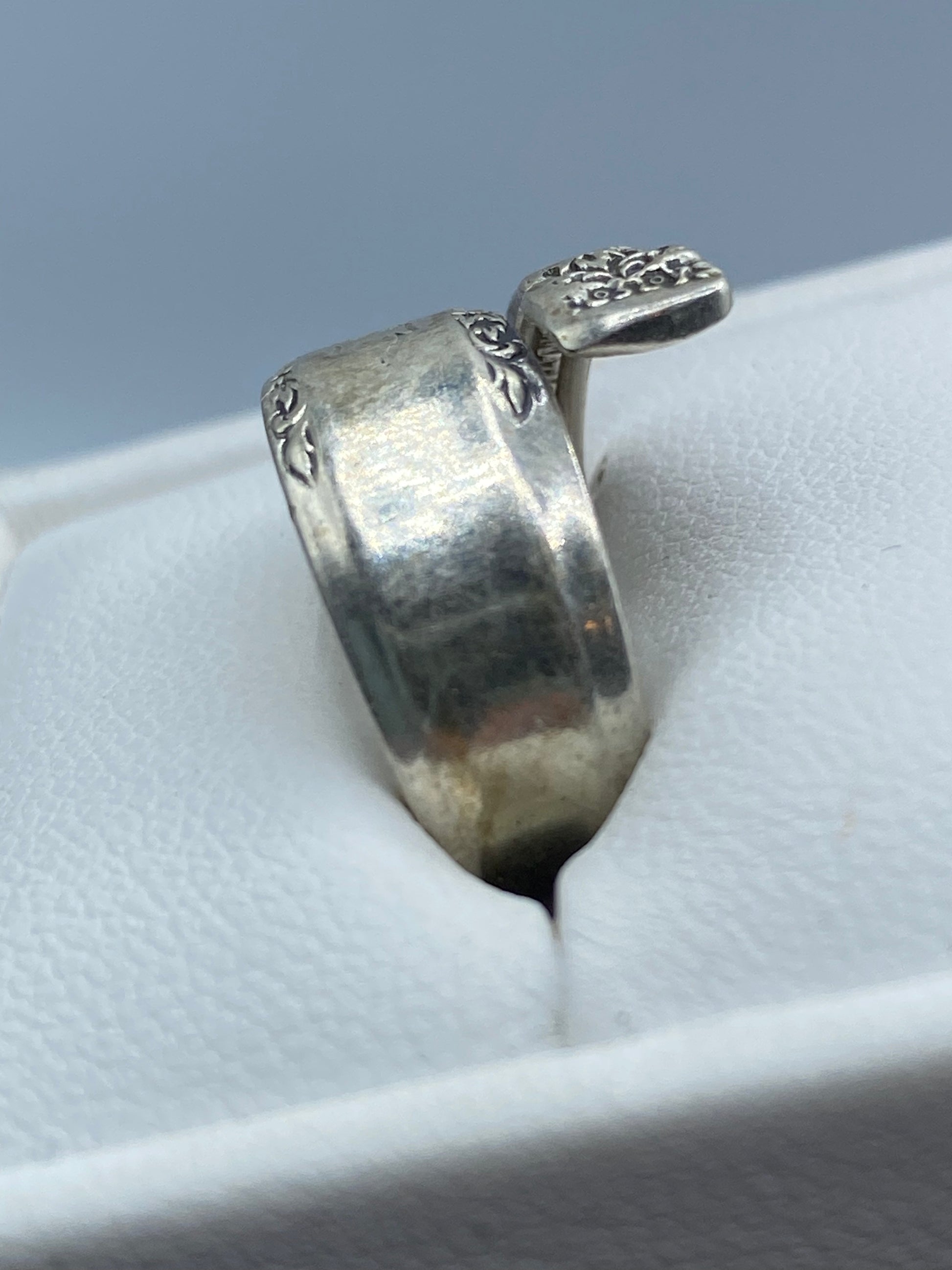 This elegant Sterling Silver Spoon Ring, marked with "International Sterling", is the perfect addition to any jewelry collection. Made of high-quality sterling silver, this ring is sure to add a touch of sophistication to any outfit. Available in size 6.5.