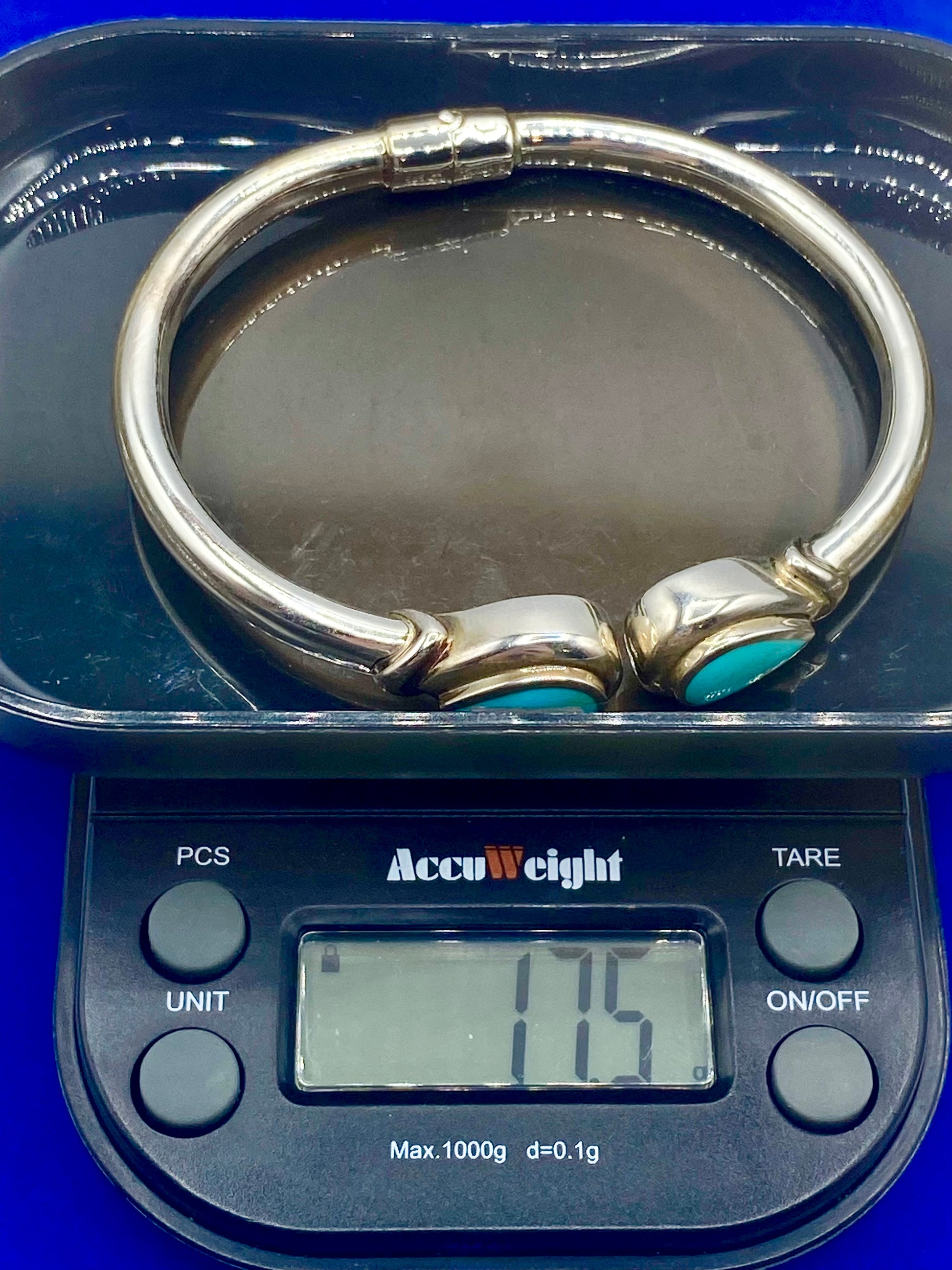 Sterling Silver Teardrop Turquoise Hinged Bangle Bracelet