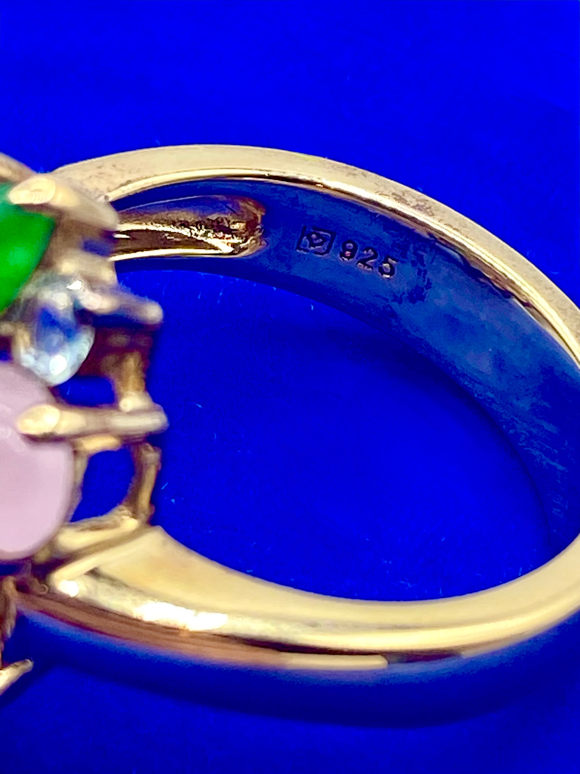 Sterling Silver Vermeil Multi Color Jade & Gemstone Ring