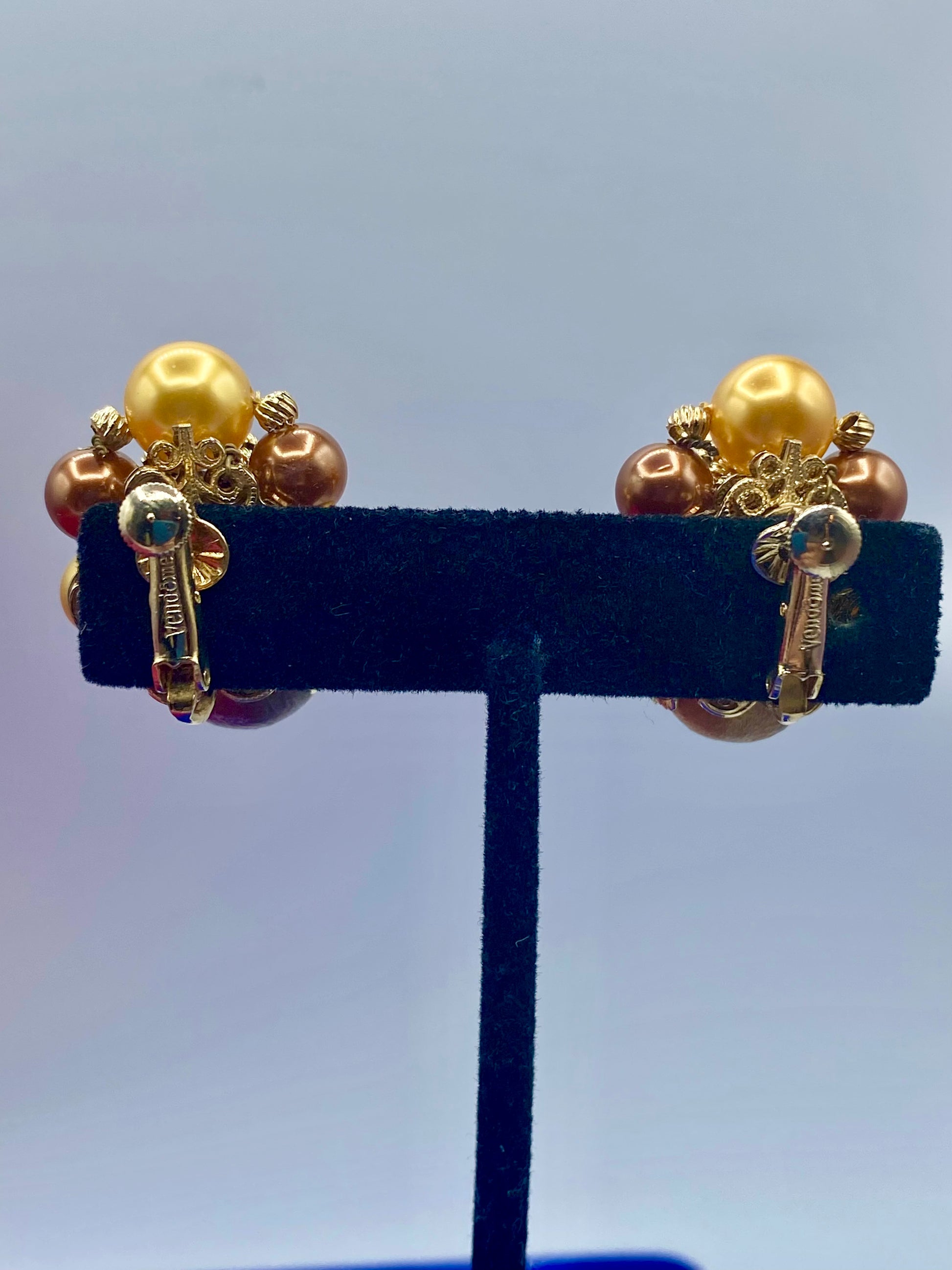 Vendome Faux Pearl Glass & Wood Cluster Clip Ons