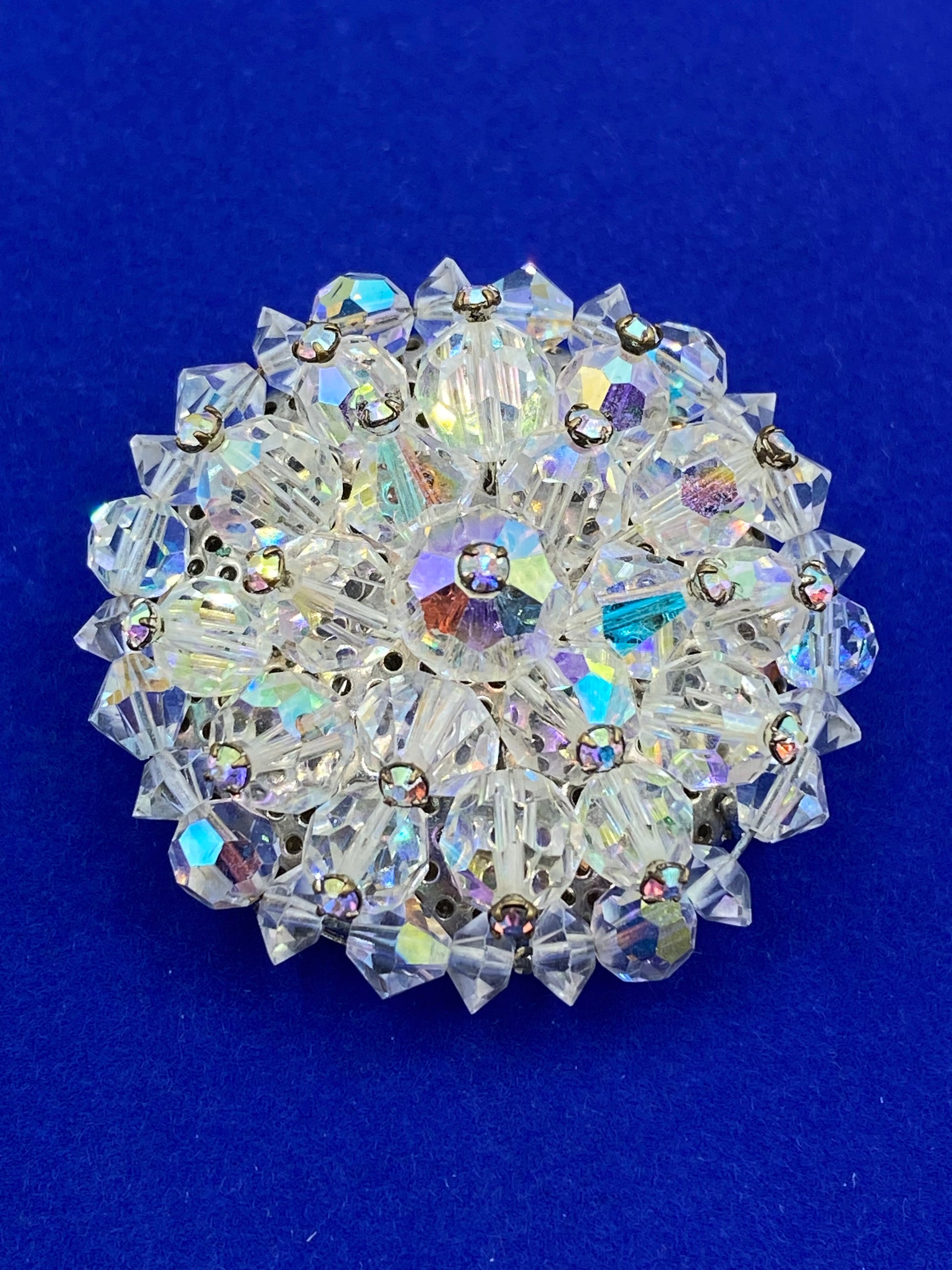 This 1.75 inch long Vintage AB Crystal Brooch features sparkling rhinestones, adding a touch of elegance to any outfit. Made with high-quality materials, it is the perfect accessory to complement your style. Make a statement with this timeless piece.