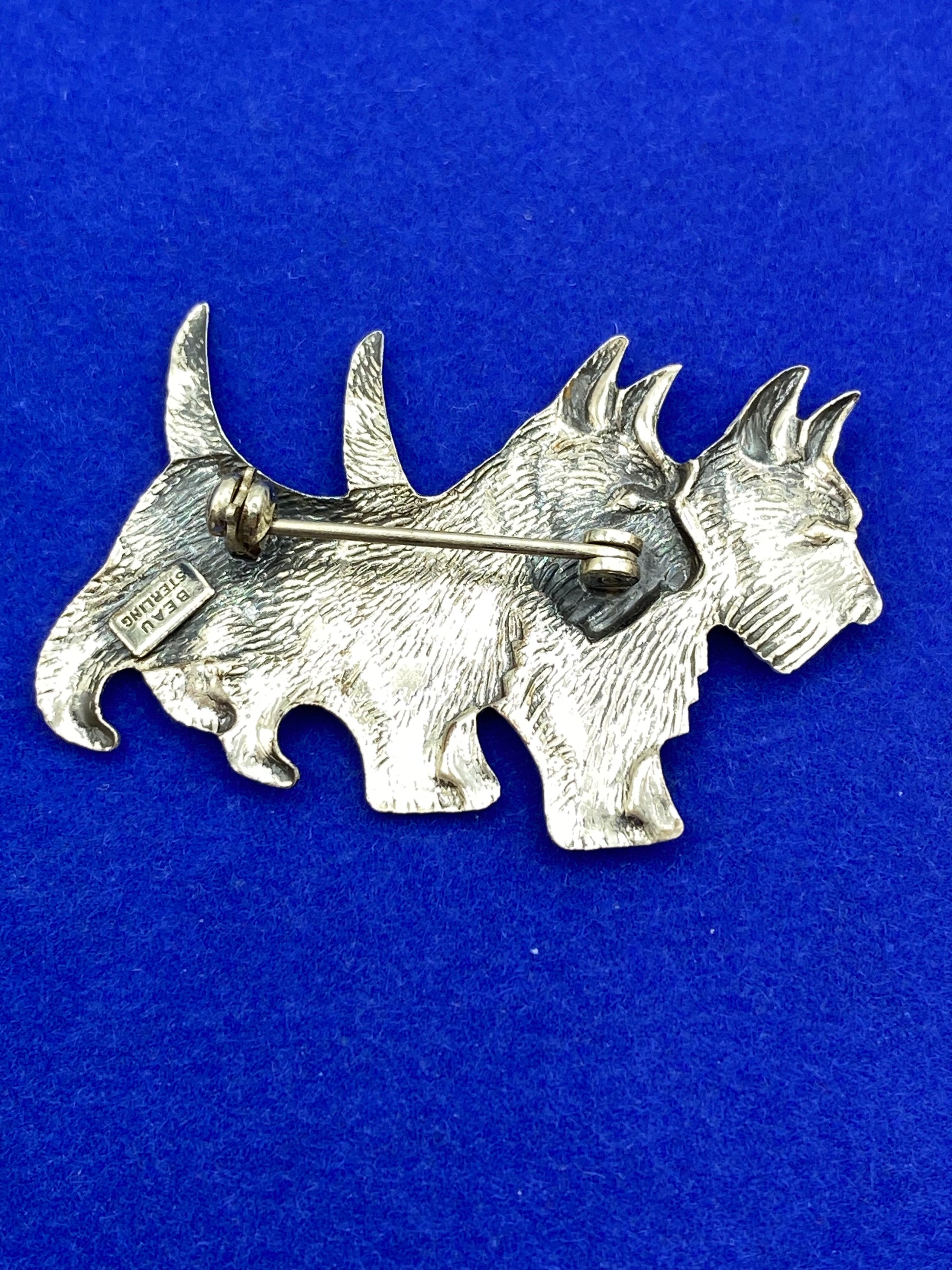 Vintage Beau Sterling Silver Walking Scottie Dog Brooch