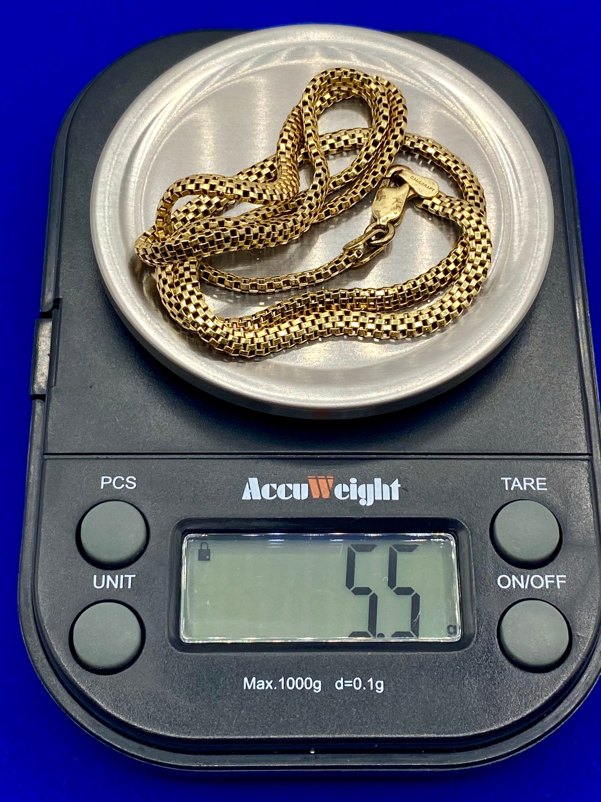 Crafted by Danecraft, this 18-inch Italian chain is made of luxurious sterling silver with a stunning vermeil finish. Weighing 5.5 grams, this vintage piece adds a touch of elegance and sophistication to any outfit. A timeless accessory that will never go out of style.