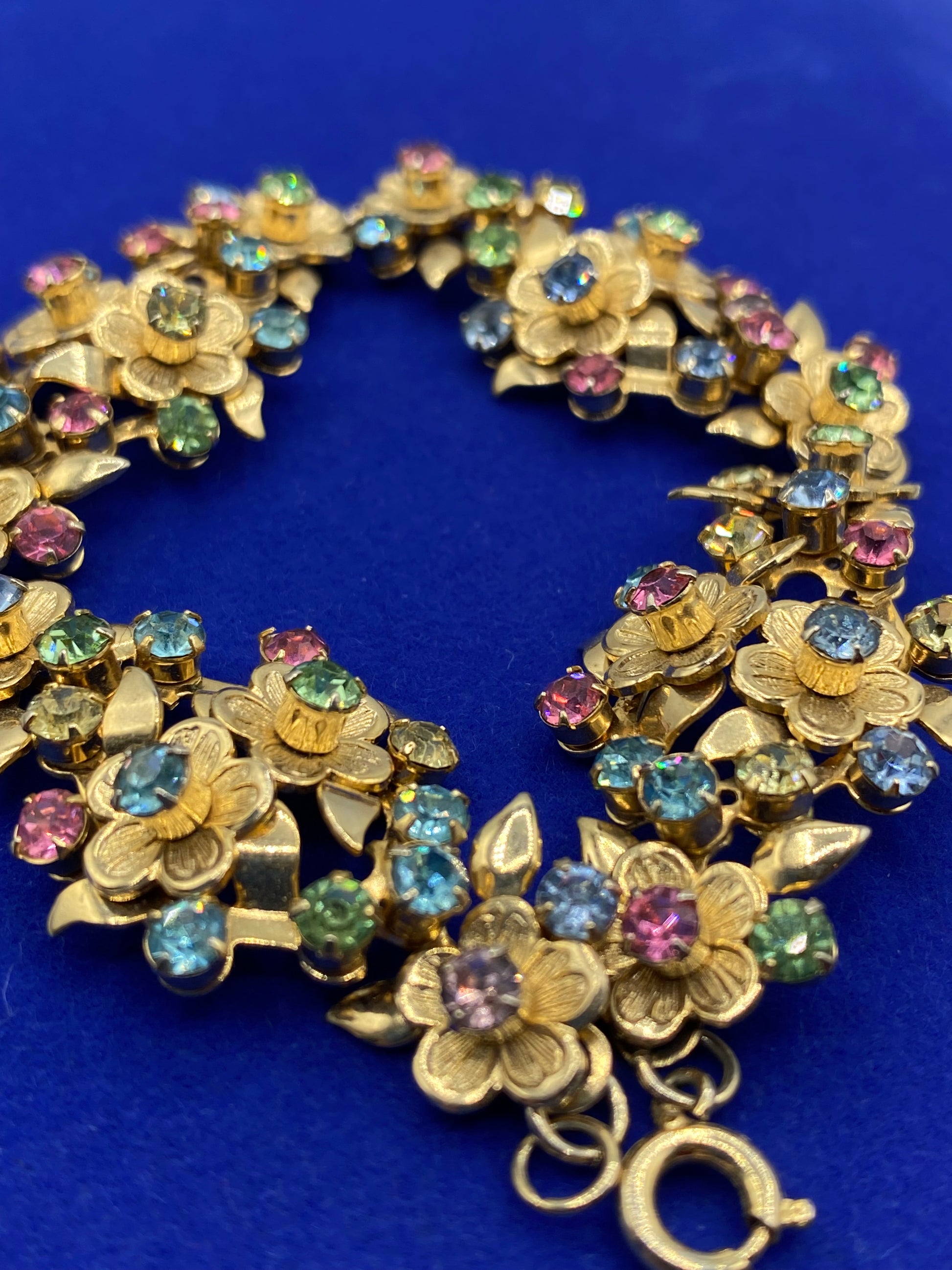 Vintage Floral Bracelet w/ Uranium Rhinestones