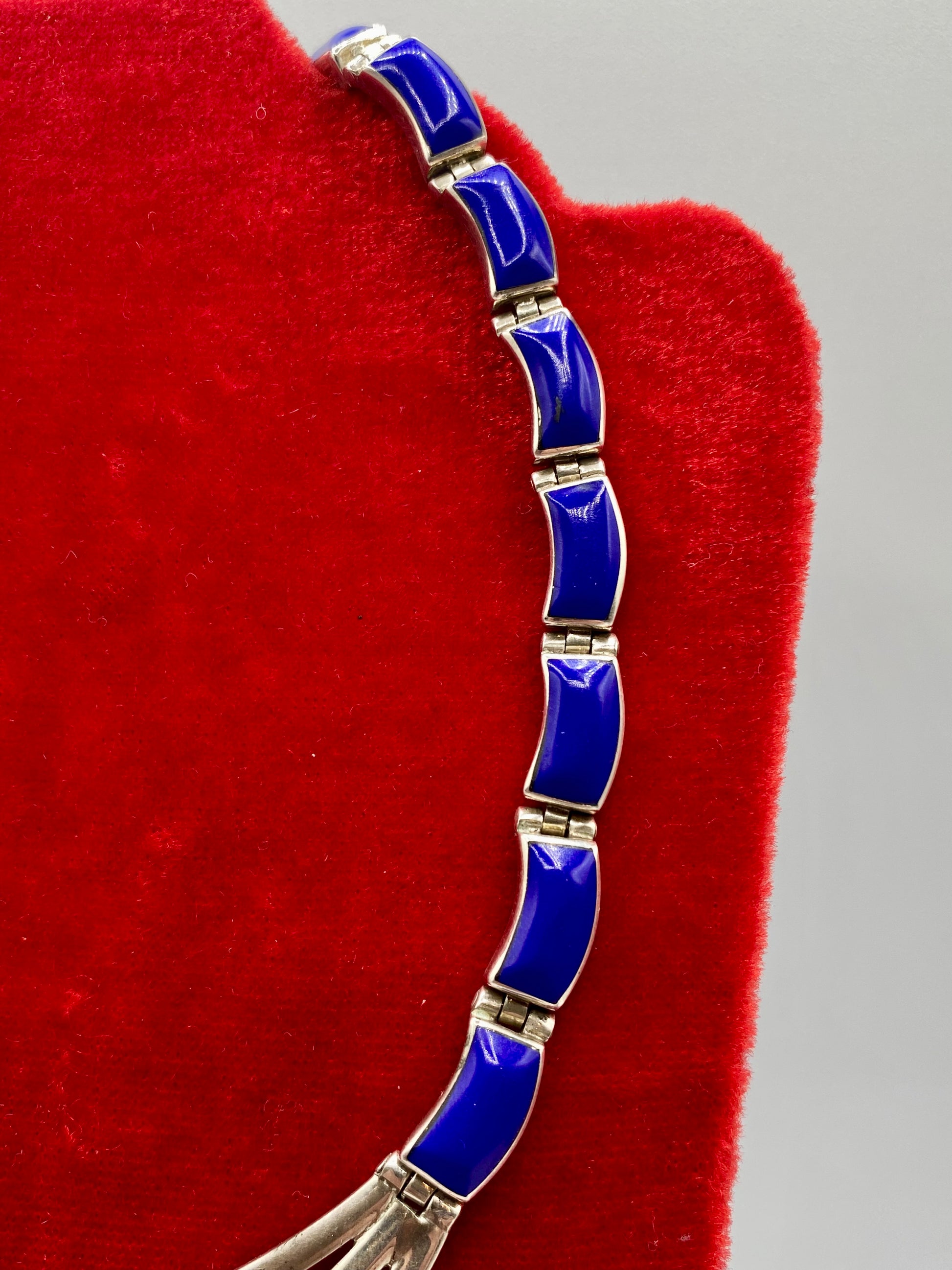 Vintage Lapis Lazuli 950 Silver Choker Necklace