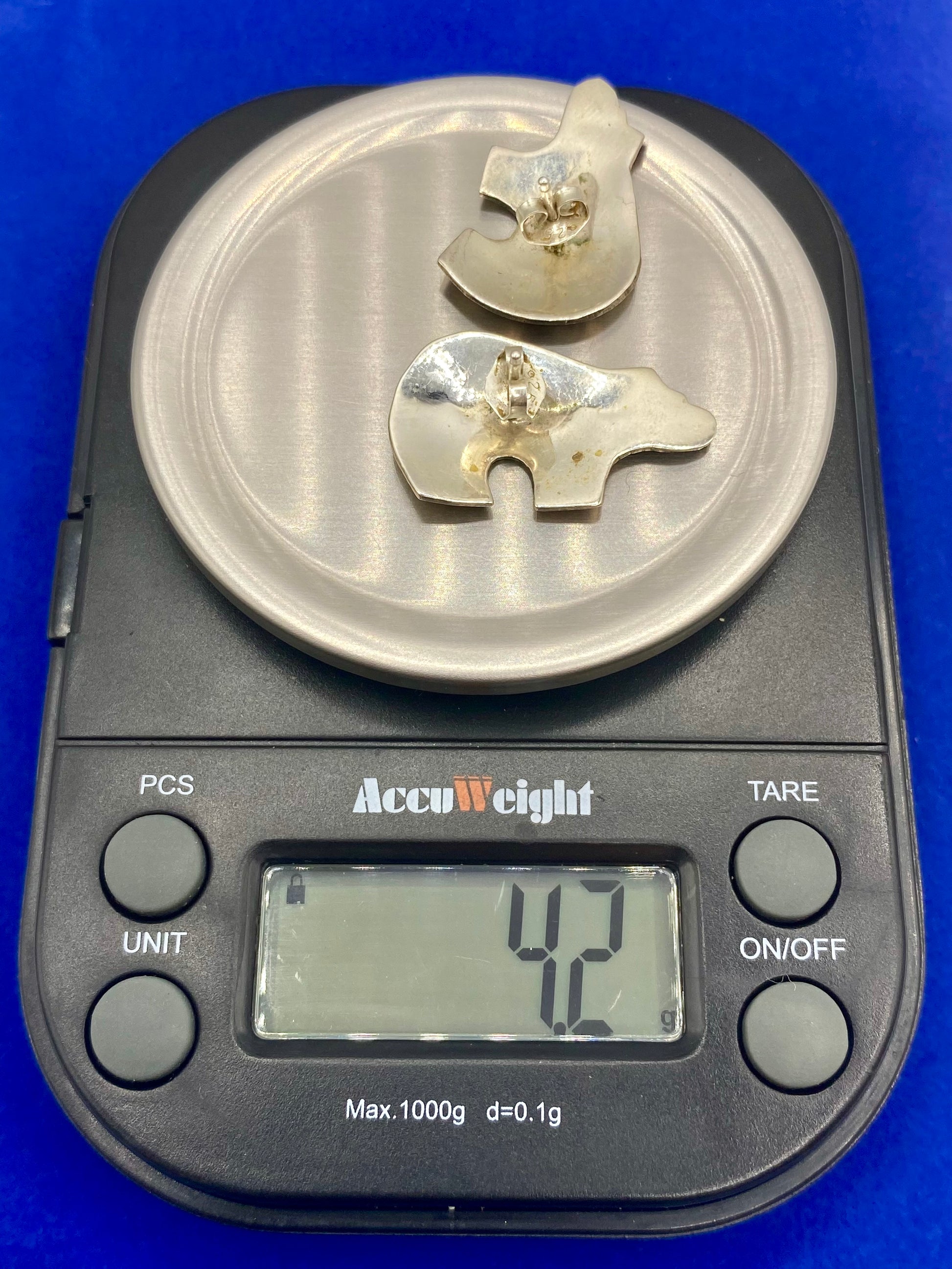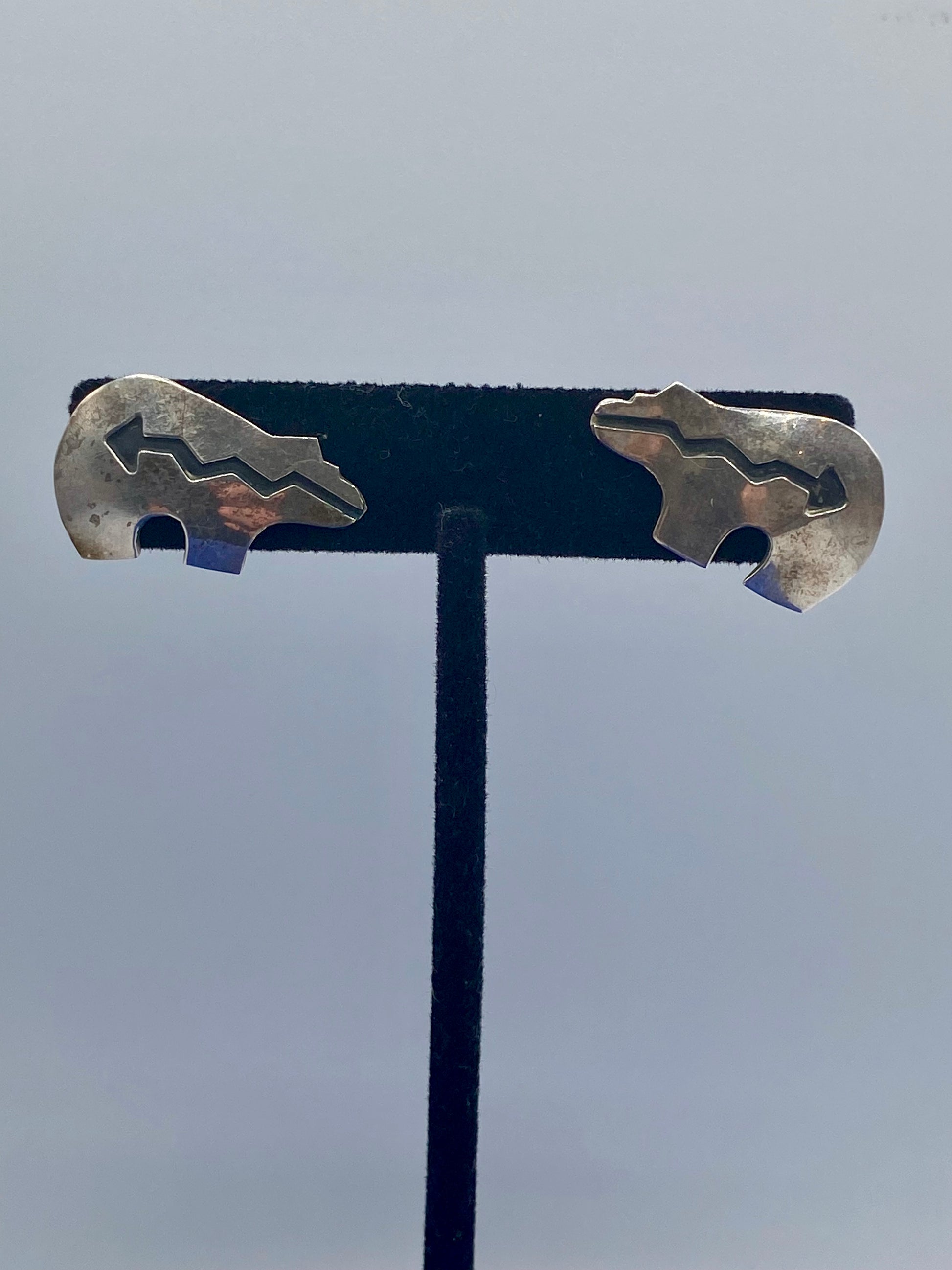Vintage Navajo Artisan Sterling Bear Fetish Stud Earrings