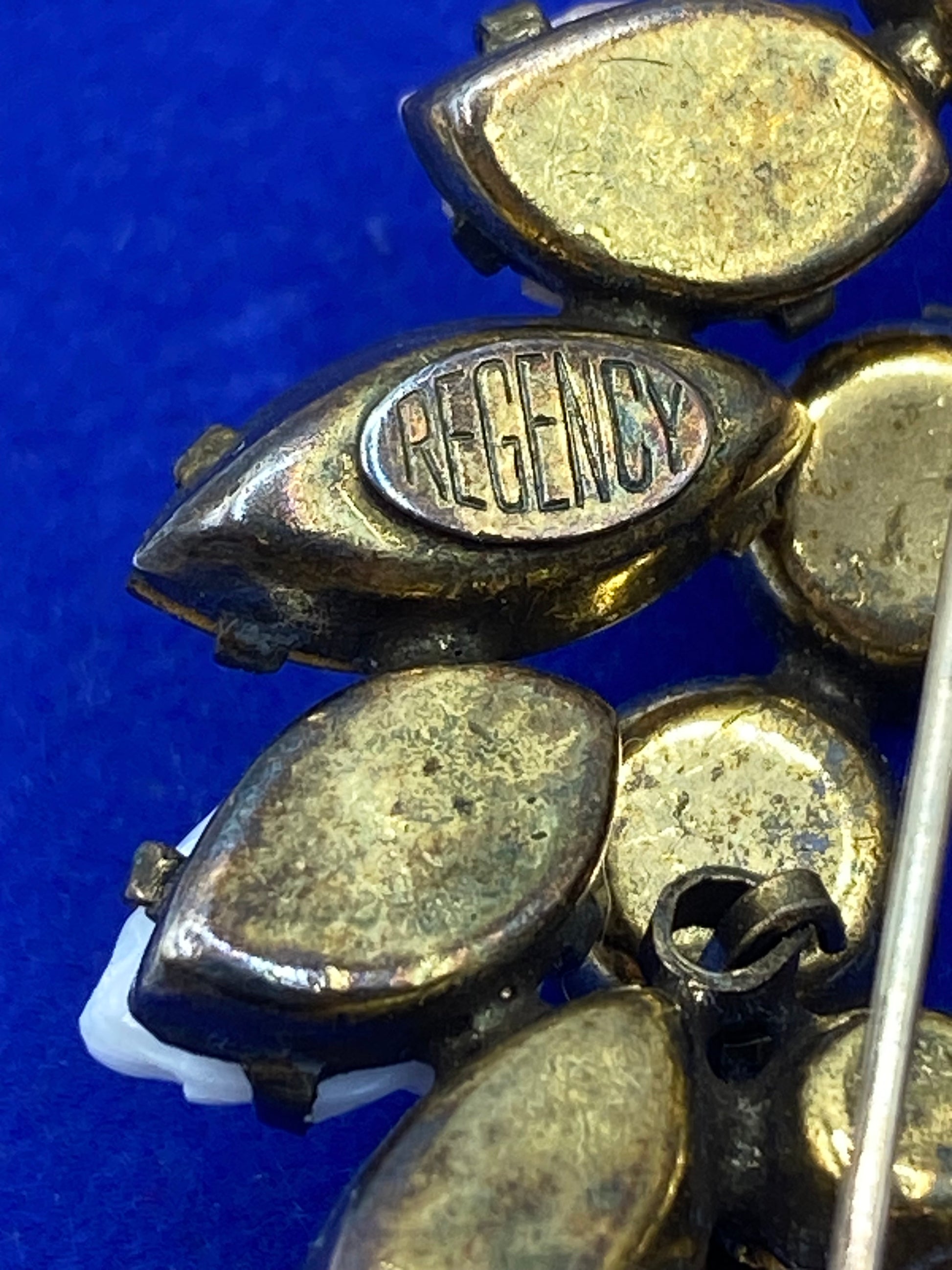 This exquisite Vintage Regency Brown & AB Rhinestone Brooch boasts a stunning design and is approximately 2 inches long. Expertly crafted with quality materials, this brooch is sure to elevate any outfit with its timeless elegance. Add a touch of sophistication to your wardrobe with this beautiful piece.