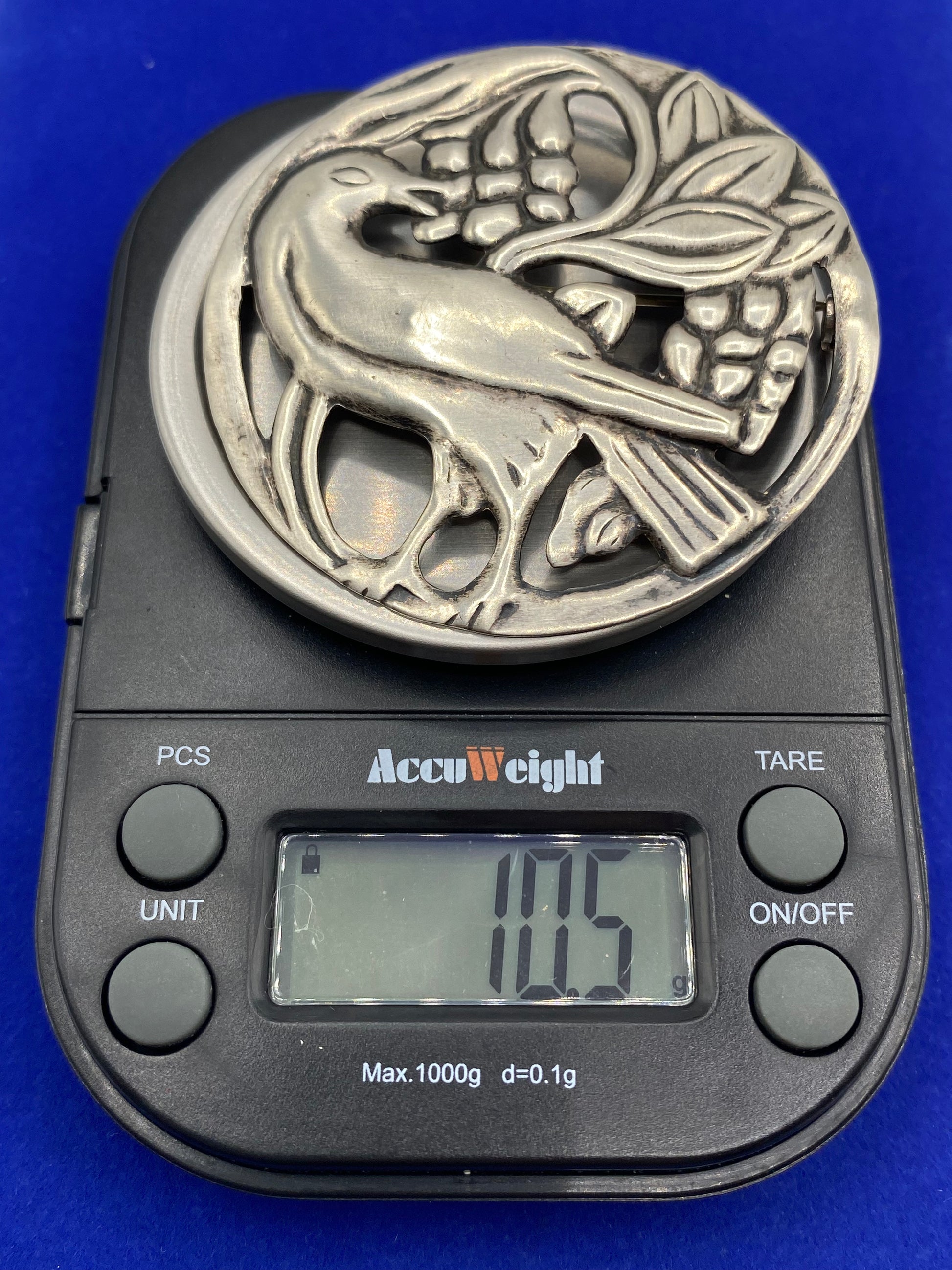 The brooch is about 2 inches long and weighs about 10.5 grams.