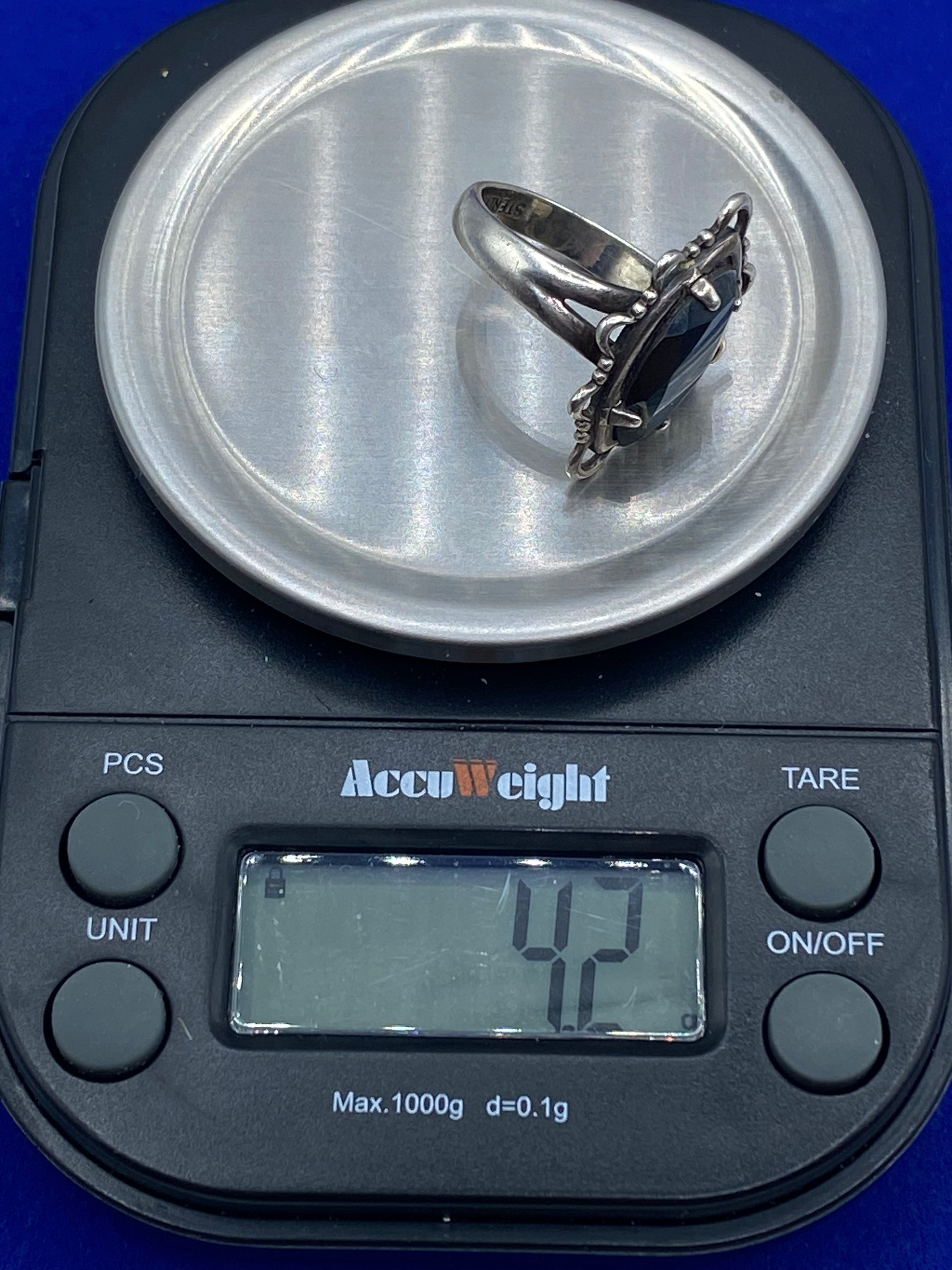 Crafted with vintage sterling silver and featuring a striking hematite stone, this size 6.75 ring showcases both elegance and trendiness. The sterling silver marking ensures authenticity and reinforces its quality. A must-have for any jewelry collection.