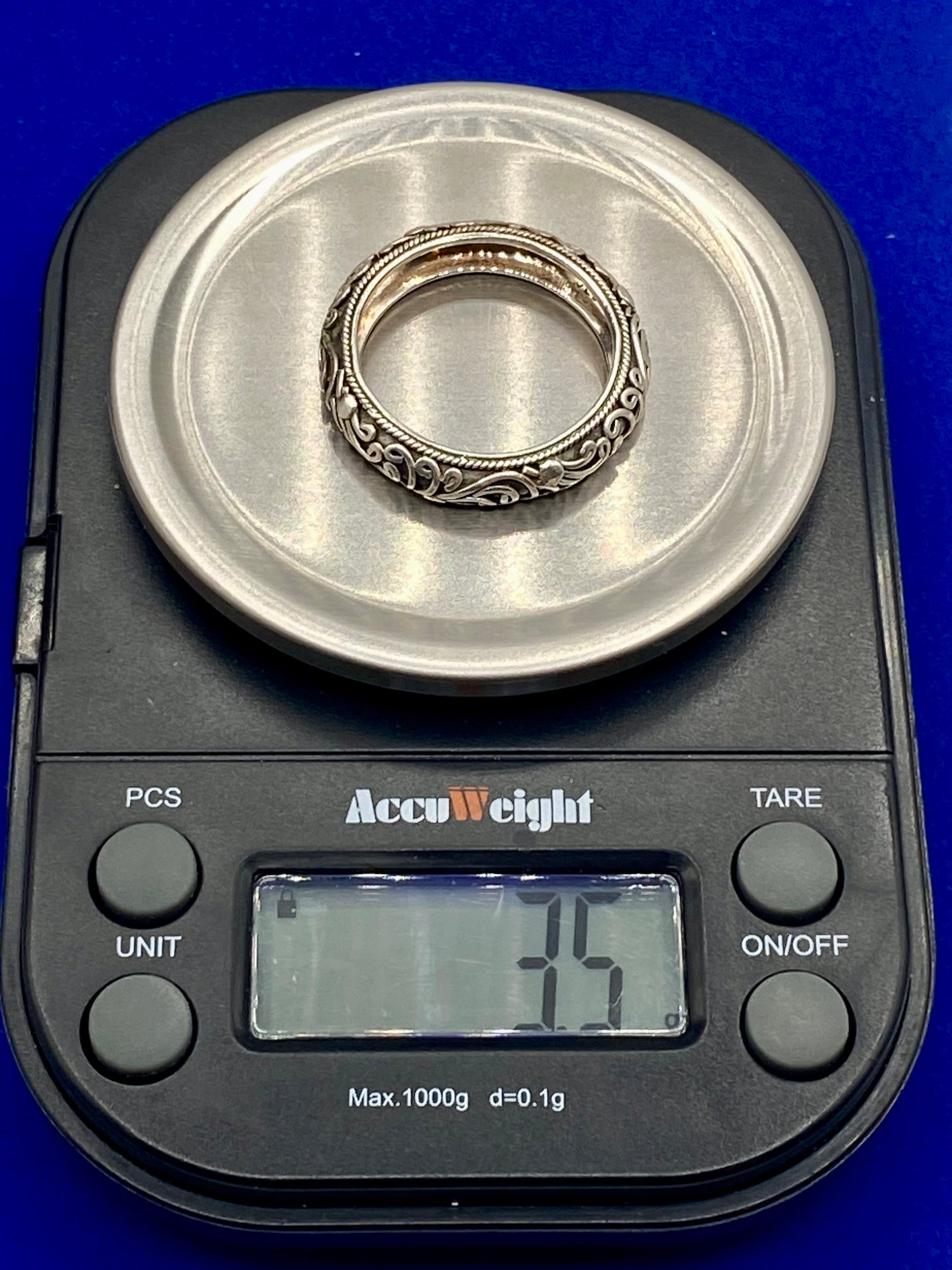 Vintage Sterling Silver Signed BA Indonesia Filigree Scroll Pattern Ring Band