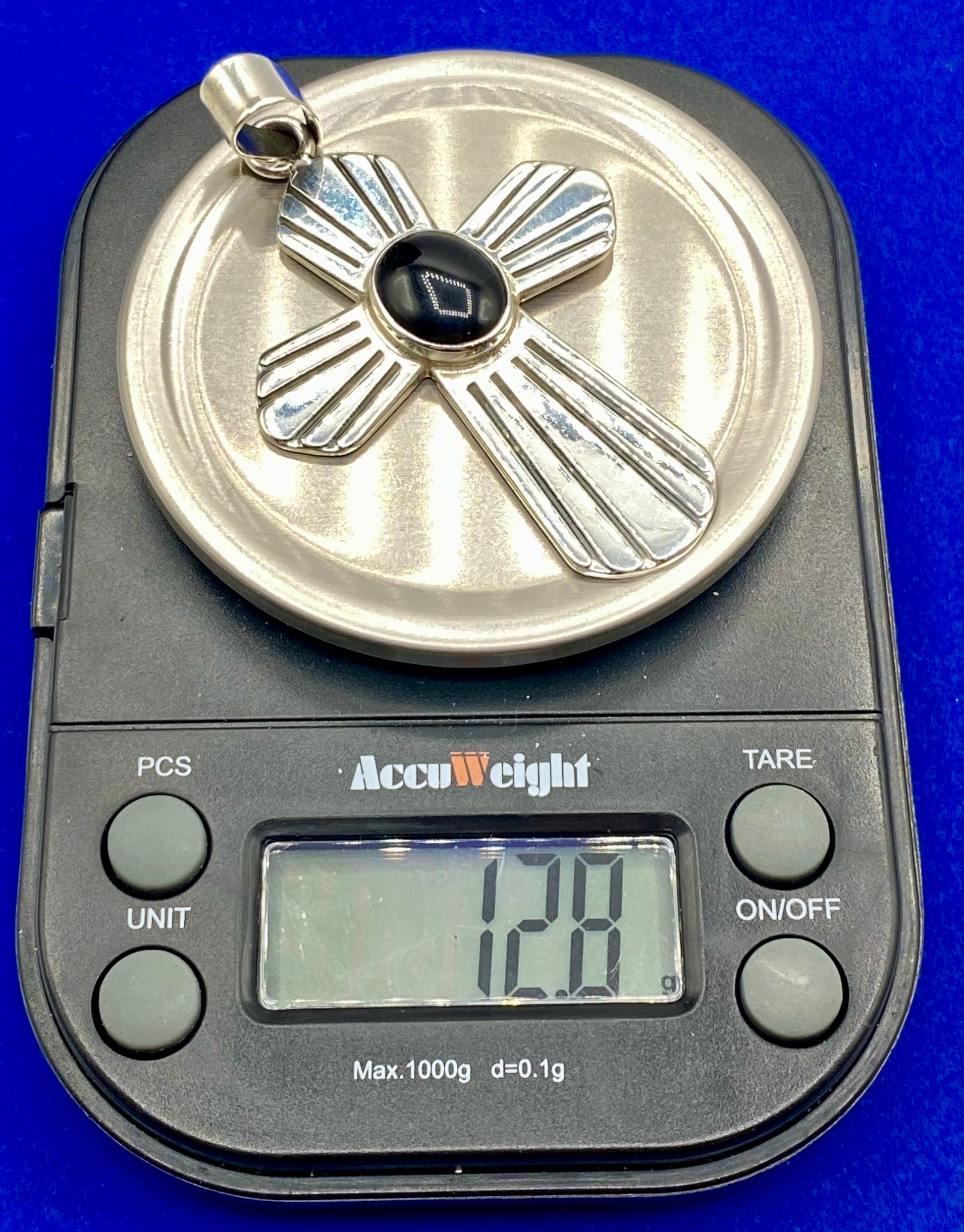 Vintage Sterling Silver Taxco Mexico Black Onyx Cross Pendant