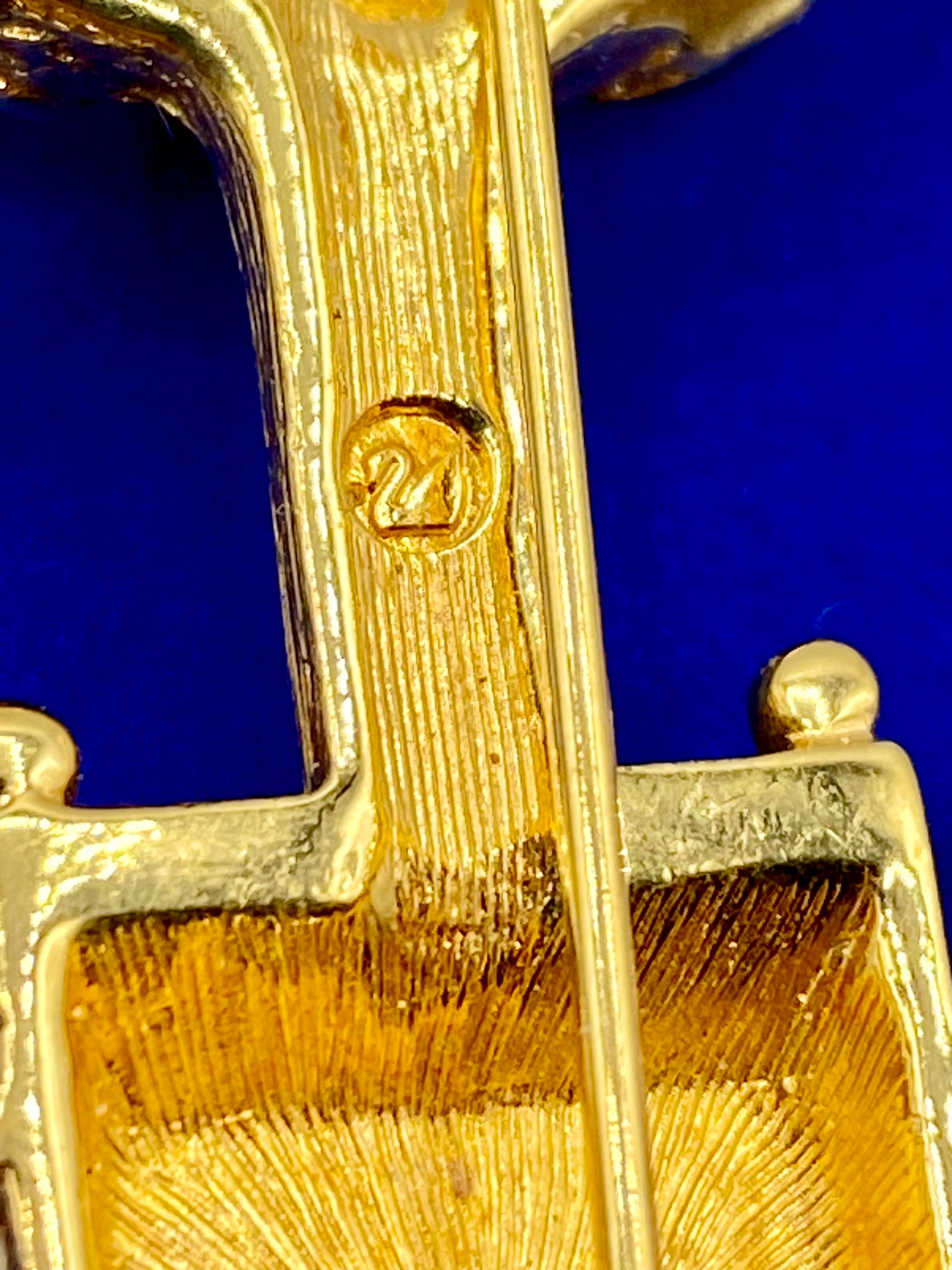 Introducing the Vintage Swarovski Enameled Topiary Tree Brooch, measuring approximately 3 inches in length. This elegant and timeless piece features meticulously handcrafted enameling and Swarovski crystals, making it the perfect addition to any outfit. Elevate your style with this stunning brooch.
