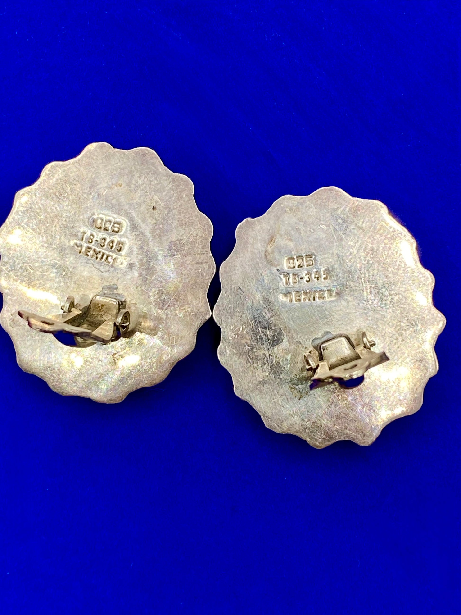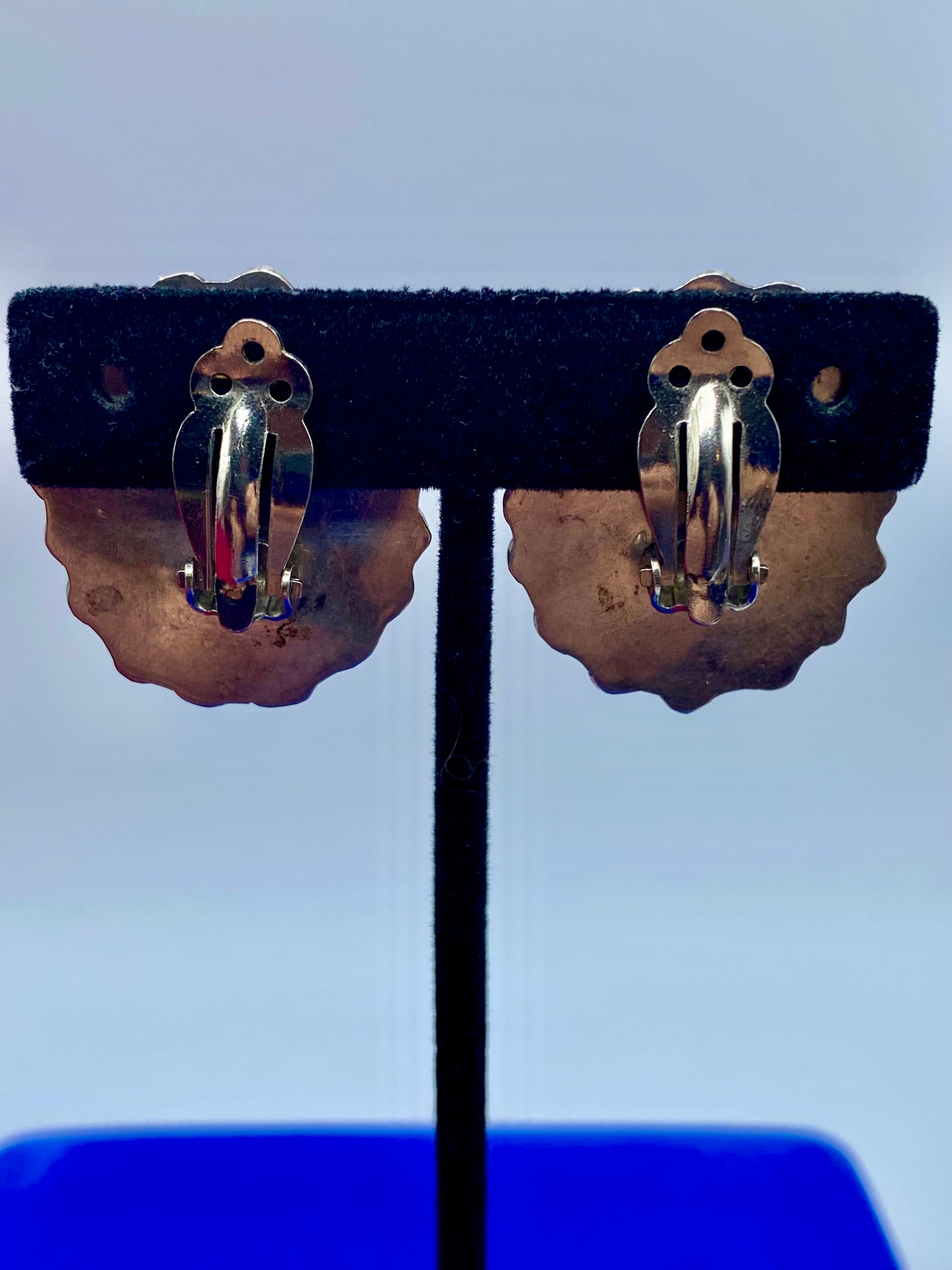 These Vintage Taxco Sterling Silver Carnelian Clip Ons are expertly crafted for an elegant and timeless look. Made with genuine sterling silver and adorned with rich carnelian stones, these earrings measure 1.75 inches long and weigh 22.8 grams. Add a touch of sophistication to any outfit with these stunning clip ons.